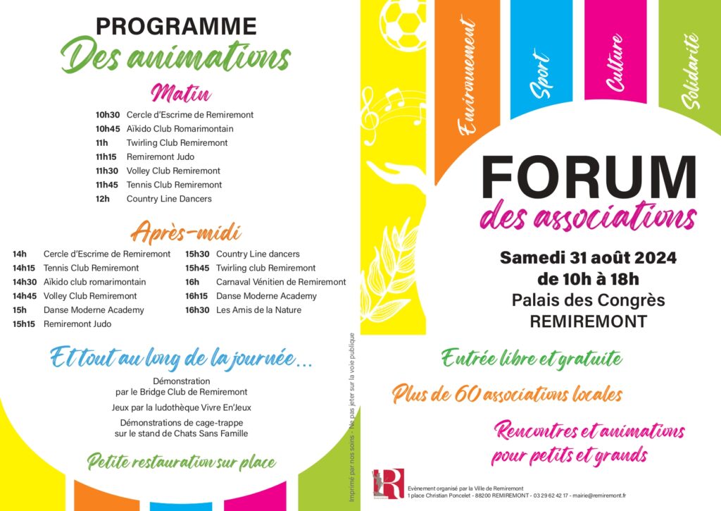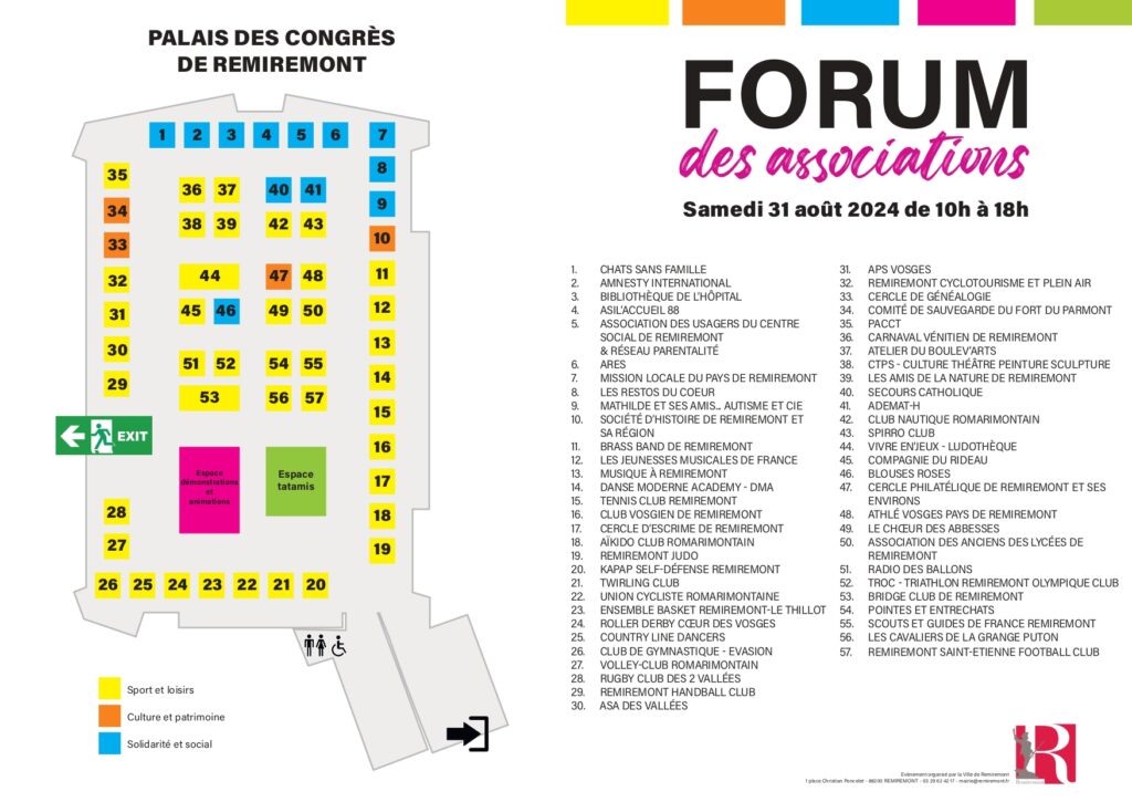 A l’approche de la rentrée, la Ville de Remiremont organise son annuel Forum des Associations, ce samedi 31 août au Palais des Congrès.
