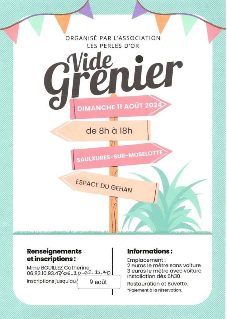 L’association Les Perles d’or organise son vide-greniers le dimanche 11 août 2024 à l’espace du Gehan à Saulxures-sur-Moselotte. Les inscriptions sont ouvertes jusqu’au 09 août.
