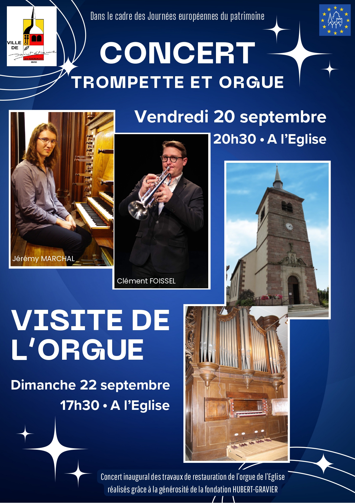 Un concert inaugural des travaux de restauration de l’orgue de l’église de Saint-Étienne-lès-Remiremont est programmé le vendredi 20 septembre à 20 h 30, dans le cadre des Journées Européennes du Patrimoine.