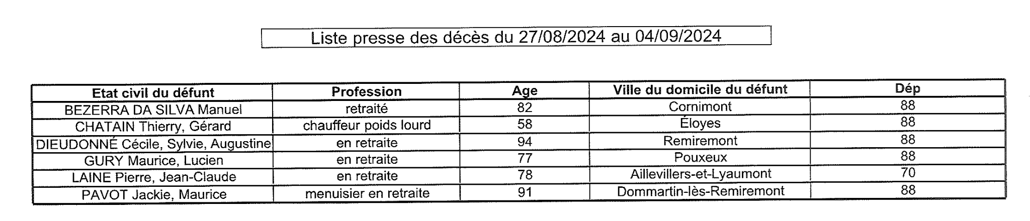Deprecated: Use of "parent" in callables is deprecated in /project/VIDEV/web/app/plugins/simple-lightbox/includes/class.options.php on line 501 Etat civil - Les naissances et décès de la semaine - Remiremont Info