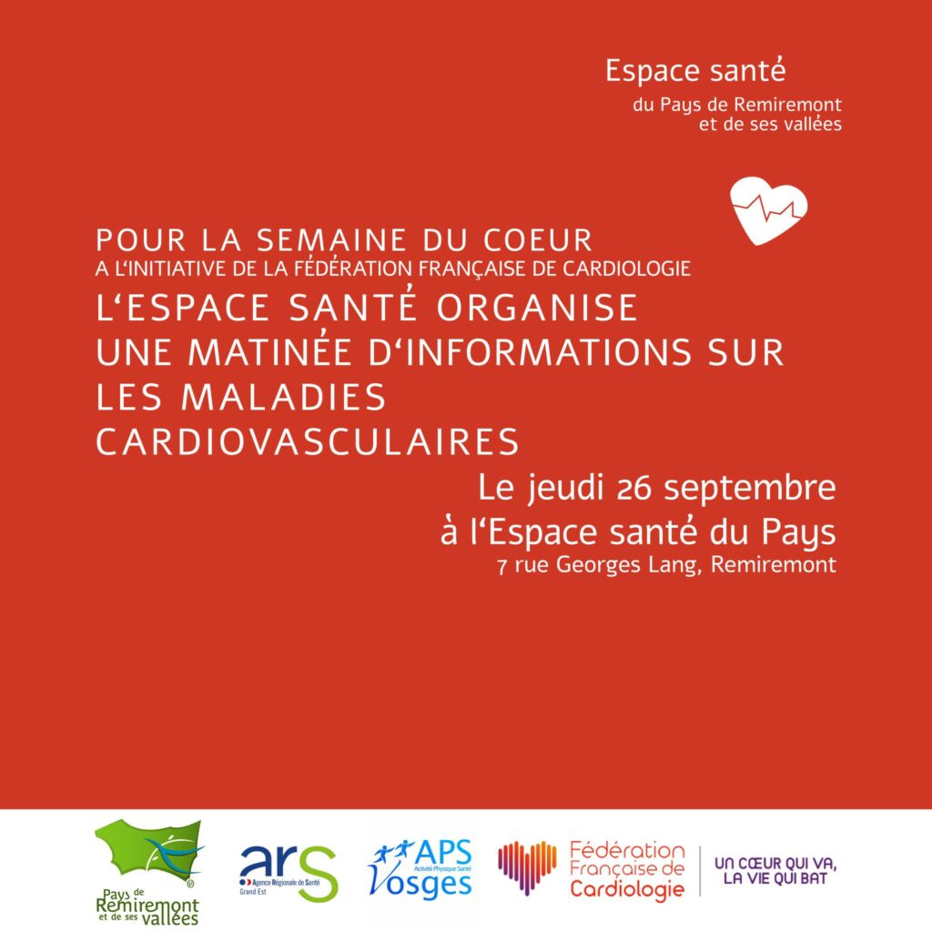 l’Espace santé propose une matinée d’informations sur les maladies cardiovasculaires le jeudi 26 septembre :