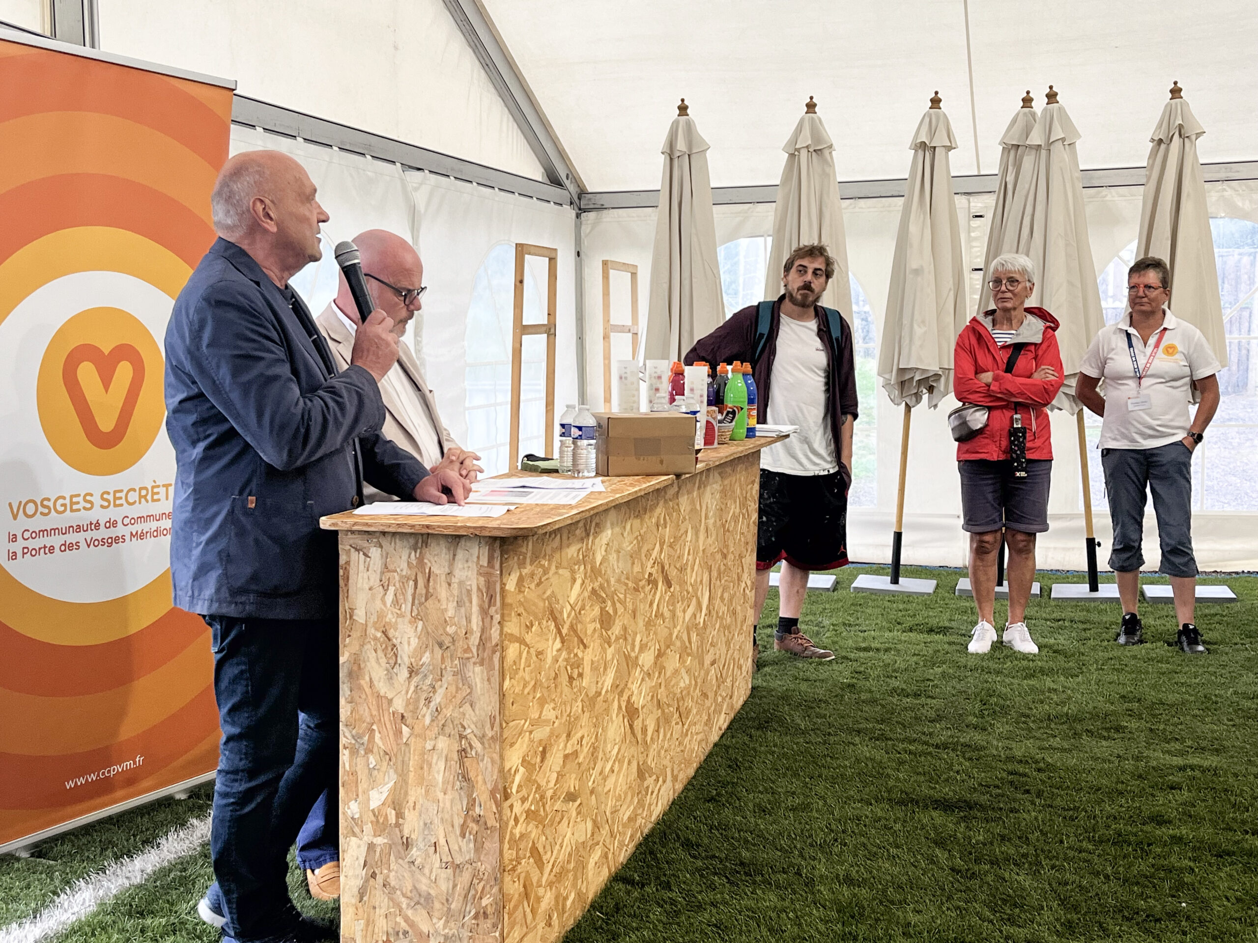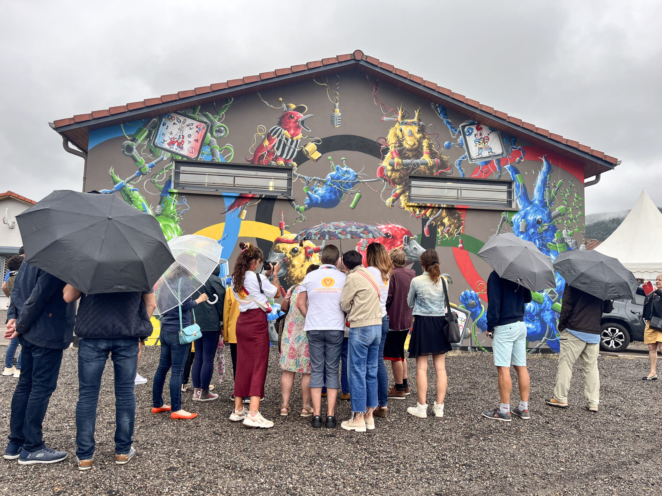 C’est en présence de Jean-Pierre Calmels, maire de Saint-Nabord et Arnaud Jeannot, vice-président de la CCPVM que la fresque a été inaugurée ce jeudi 5 septembre au stade des Perrey avec une animation musicale de l’ensemble de saxophones de l’école intercommunale de musique Le Cube. Un emplacement qui donnera, à coup sûr, une belle visibilité à l’œuvre puisqu’elle est située dans un lieu de passage fréquent et qui accueillera dans une semaine, l’Infernal Trail des Vosges.