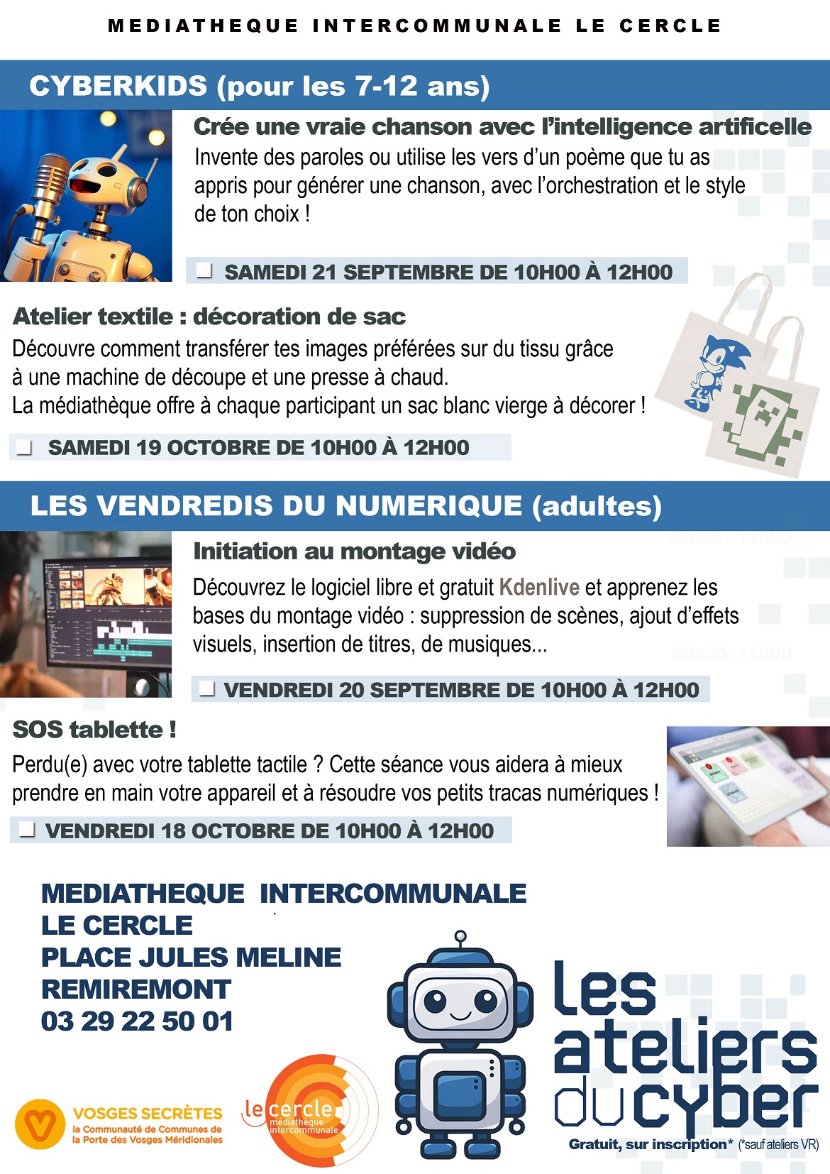 LES ATELIERS DU CYBER DE LA MEDIATHEQUE