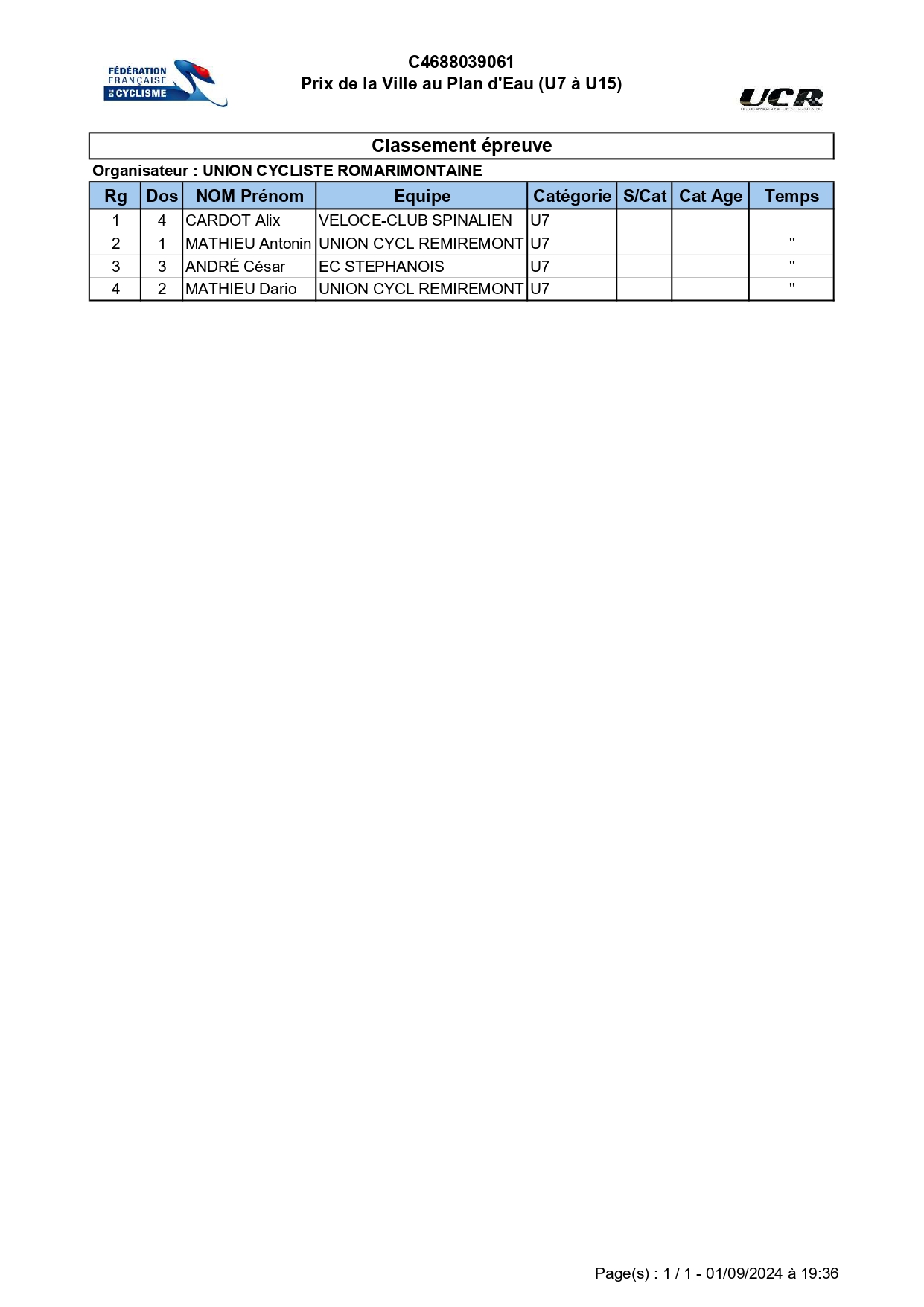 Ce samedi 31 août, l’UCR (Union cycliste Romarimontaine) organisait le prix cycliste de la ville au plan d’eau. Les catégories U7 à U15 des clubs de Remiremont et des communes alentours ont participé à diverses épreuves.