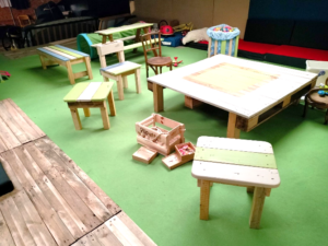 Vous l’avez compris, Steven vous présentera les nouveaux projets de réemploi et de rénovation et autres projets de motricité et il a hâte de faire découvrir, à ceux qui ne connaissent pas encore, tous les différents aménagements de tiers-lieu, réalisés avec des matériaux revalorisés, où les enfants, à partir de 2 ans, peuvent évoluer dans un espace d’éveil, très novateur et unique, comprenant des zones de jeux et de motricité –sous la surveillance de leurs parents, bien-sûr, composées de tapis de réception d’escalade, de rondins, de parcours au sol réalisés avec des prises d’escalade.