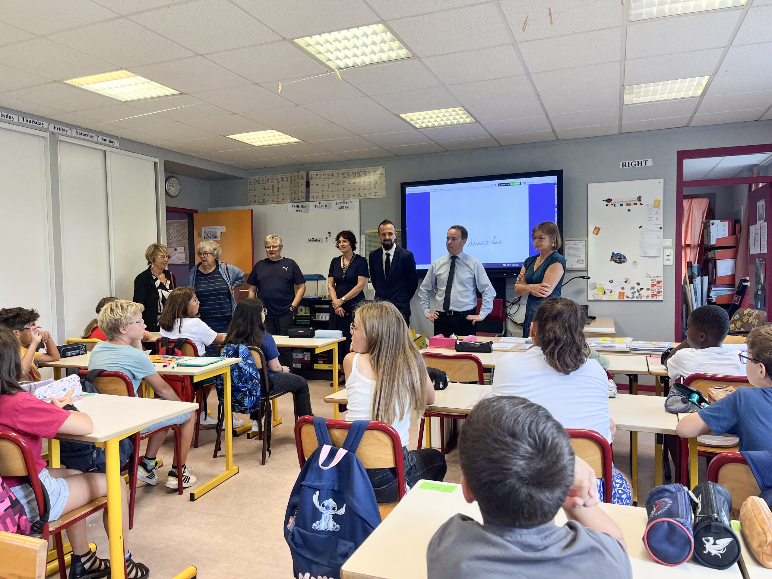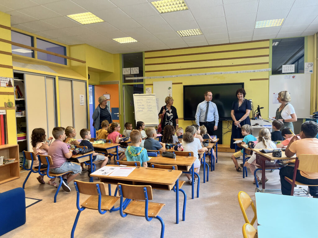 La tournée des écoles a démarré dès 8 h 30 ce lundi matin pour Jean-Benoît Tisserand et ses élus. Il a ensuite été rejoint au cours de ses visites par l’inspecteur d’académie Aurélien Pinto. La ville de Remiremont disposant de 5 écoles, dont 4 publiques et 1 privée, le maire s’est rendu dans chaque classe pour rencontrer les élèves de la maternelle au CM2, ainsi que les équipes encadrantes. Jean-Benoît Tisserand a commencé ses visites à l’école Jules Ferry puisque le directeur de l’établissement scolaire, Stéphane Gauville, y effectuait sa dernière rentrée des classes.