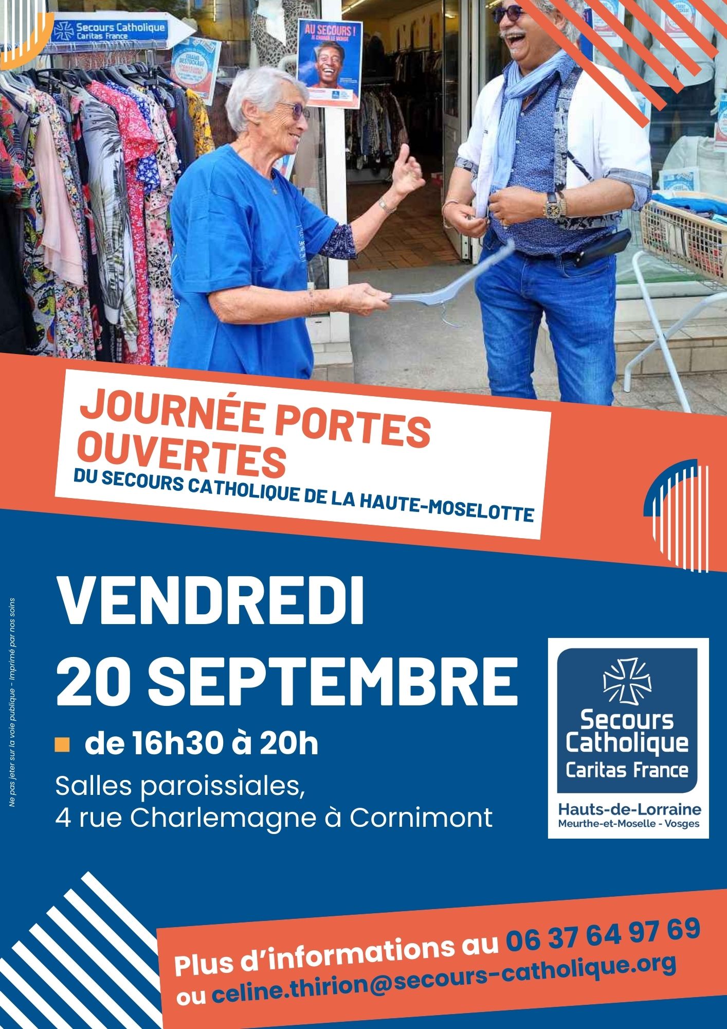 – L’équipe du Secours Catholique de la Haute-Moselotte organise des portes ouvertes le 20 septembre prochain de 16h30 à 20h à Cornimont.