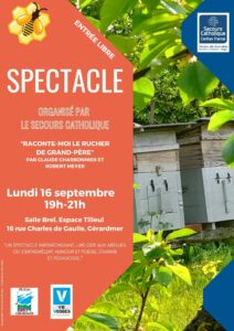 – Un spectacle, organisé à l’Espace Tilleul à Gérardmer le 16/09 prochain à partir de 19h, qui met à l’honneur la biodiversité et le monde des abeilles. Un vibrant plaidoyer, joué par Claude Charbonnier et Robert Meyer de l’association « Les Histoires de mon grand-père ». L’organisation de ce spectacle est portée par les Jardins de Jamagne du Secours Catholique, action d’insertion qui existe sur Gérardmer depuis maintenant quinze ans et qui propose des jardins collectifs.