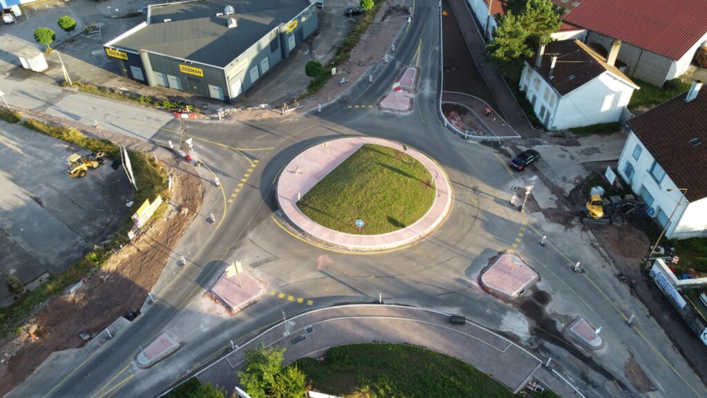 Le nouveau giratoire de la zone du Moulin à Saint-Nabord commence à prendre forme. Les travaux se poursuivent et les enrobées devraient bientôt être appliquées. De ce fait, la route sera fermée les nuits du 23 au 27 septembre de 19 h à 6 h.