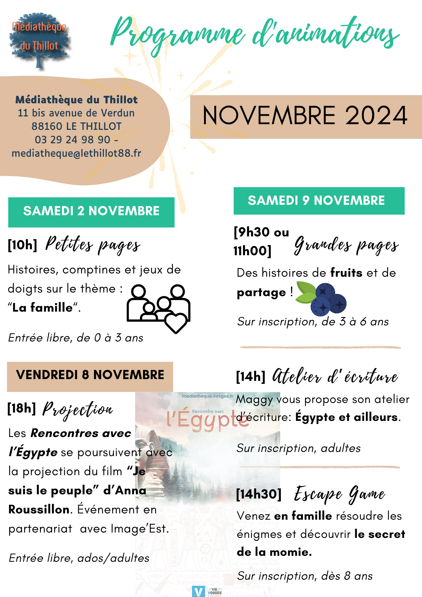 Pour rappel tous nos événements et ateliers sont gratuits ! Parfois avec, parfois sans inscription.