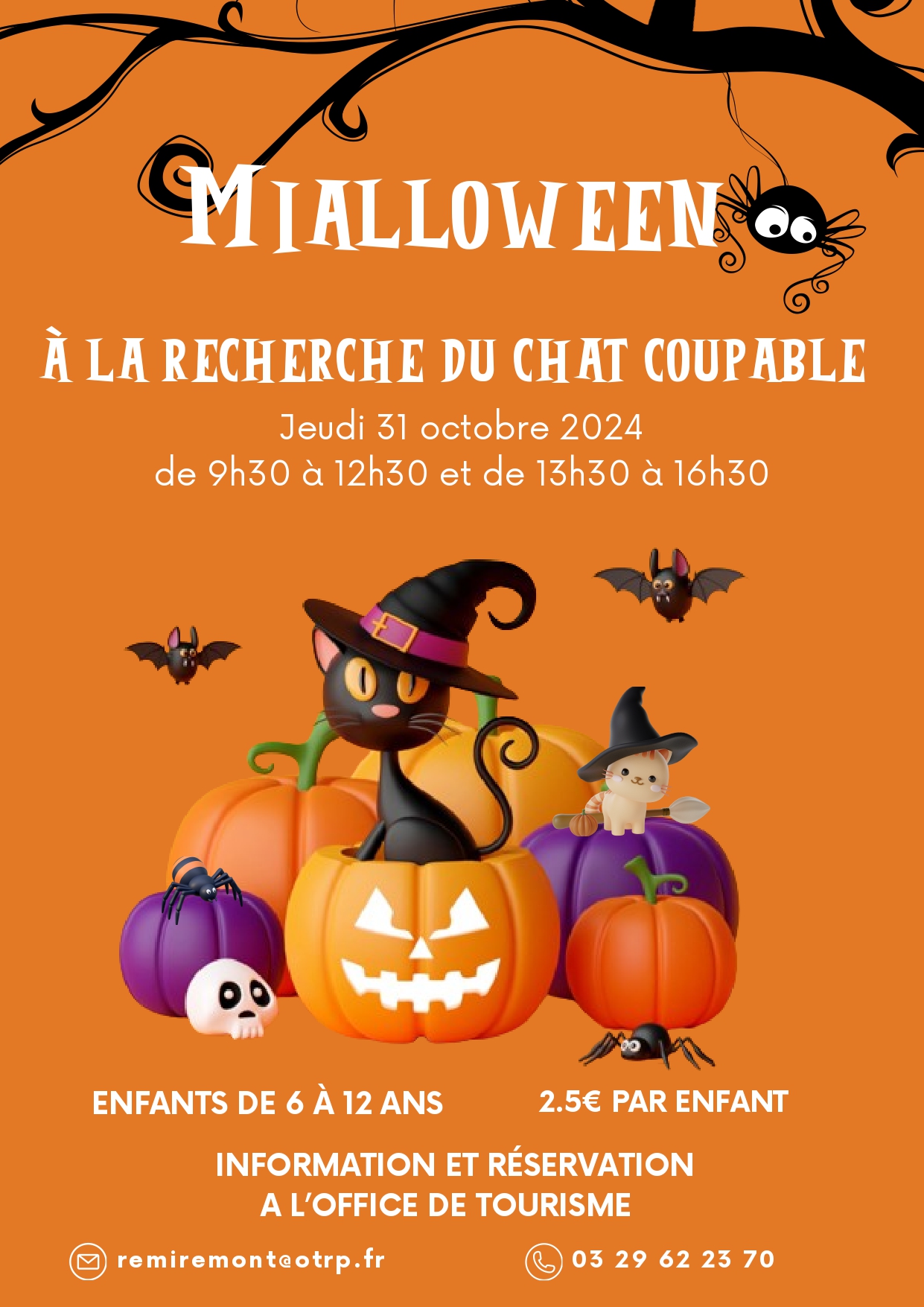 Comme chaque année pour Halloween, l’office de tourisme propose une animation pour vos enfants à travers la ville de Remiremont. En 2024, une énigme inédite a été créée : « Mialloween, à la recherche du chat coupable » !