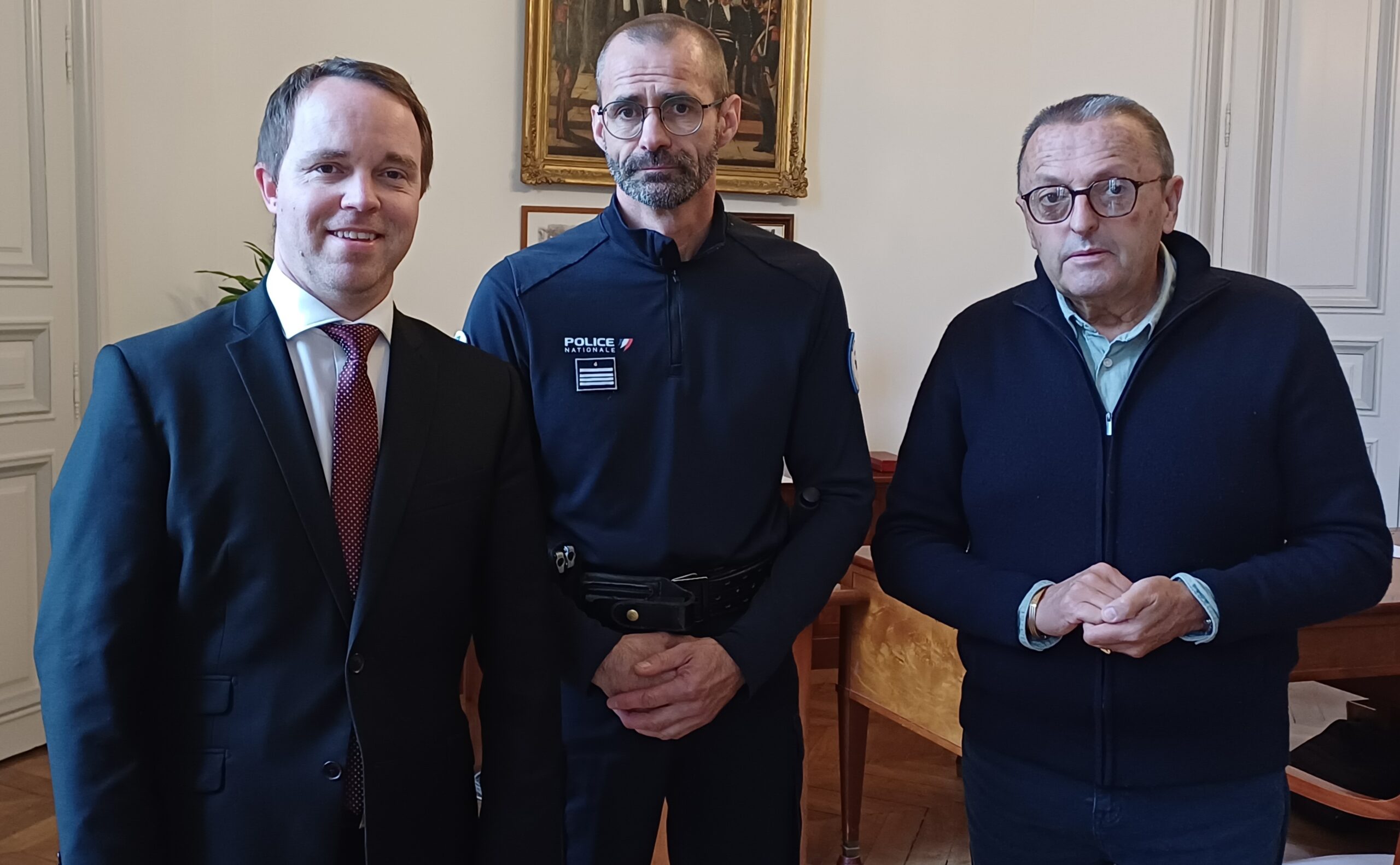 Jean-Benoît Tisserand, maire de Remiremont, accompagné par Bernard Creusot, élu délégué à la sécurité, ont tous deux accueilli Nicolas Greth nouveau commandant de police.