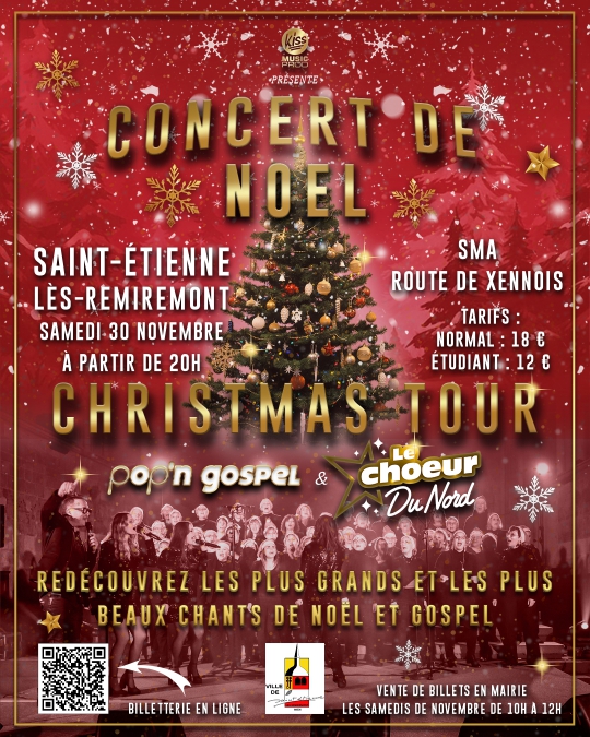 La ville de Saint-Etienne-lès-Remiremont s’apprête à accueillir pour la première fois un concert de Noël grandiose à la salle multi-activités (SMA). Après le succès de leur première représentation en février dernier, le groupe Pop’n Gospel revient, accompagné cette fois de 50 choristes du célèbre « Chœur du Nord, » la plus grande chorale des Hauts-de-France. Ce concert de Noël, baptisé « Christmas Tour », aura lieu le samedi 30 novembre à 20h et promet un voyage musical au cœur de l’esprit de Noël.