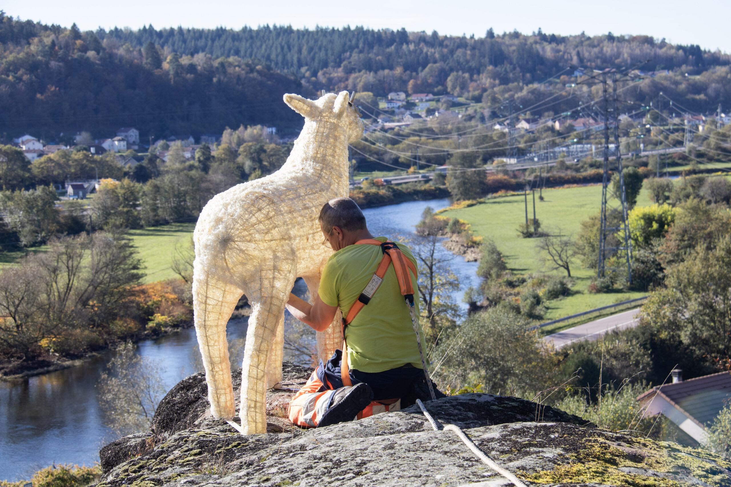 Chaque année, Lionel Aubry répète ce geste symbolique, en scellant la biche lumineuse solidement pour éviter tout risque de chute dû aux rafales de vent, mais aussi pour dissuader les tentatives de vol. L’installation en avance par rapport aux fêtes de fin d’année permet de profiter des conditions météorologiques favorables pour travailler sur la roche, qui devient glissante et dangereuse dès qu’elle est humide.