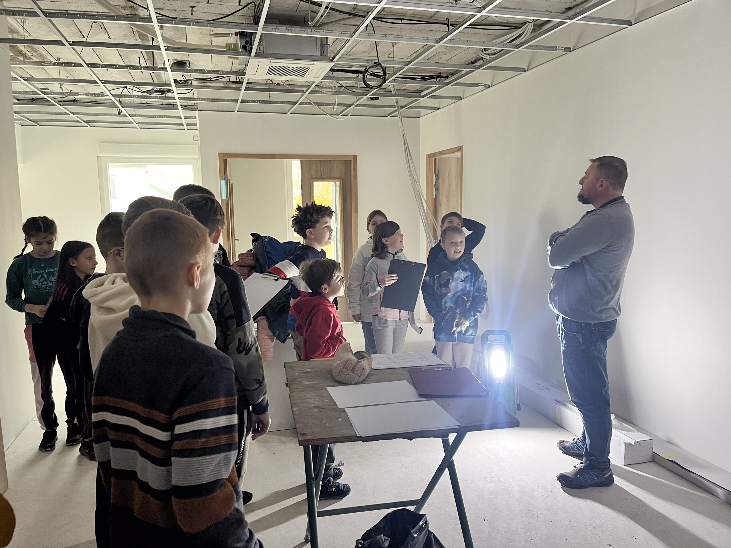 Sous forme de jeu, les enfants ont exploré le bâtiment en chantier, notant au passage les différents corps de métiers ayant contribué à sa réalisation : électricien, plaquiste, plombier-chauffagiste, et bien d’autres. Une fois leur exploration terminée, les élèves se sont réunis avec Michaël Henry, qui leur a expliqué le rôle spécifique de chaque professionnel et l’importance de leurs compétences pour mener à bien un projet de construction.