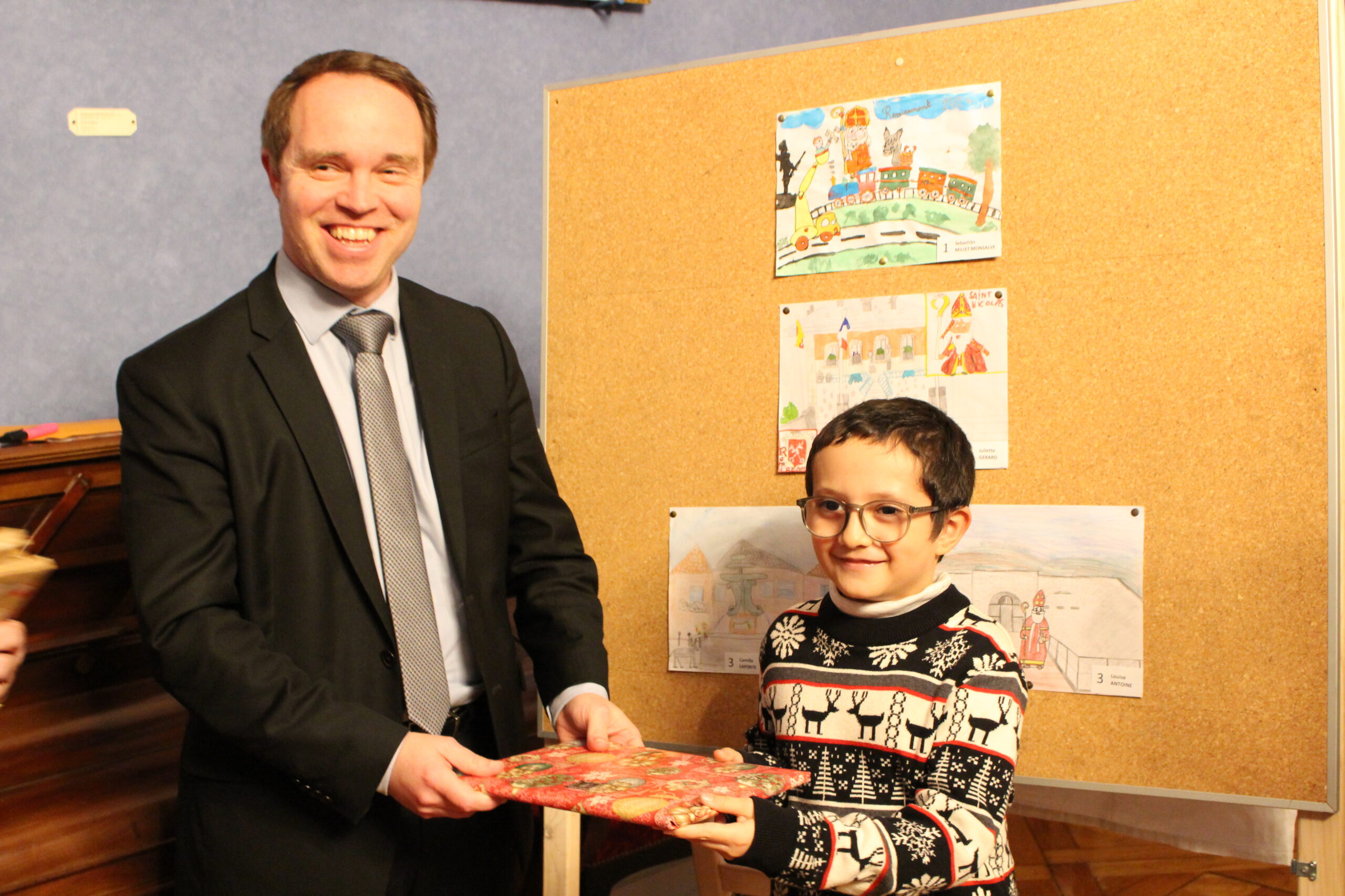 Chacun des 4 gagnants, car cette année il y avait 2 troisièmes ex æquo tellement il a été difficile au jury de choisir et de départager, s’est vu remettre en cadeau un livre et aura en plus la joie et l’honneur de monter sur le char de Saint Nicolas.