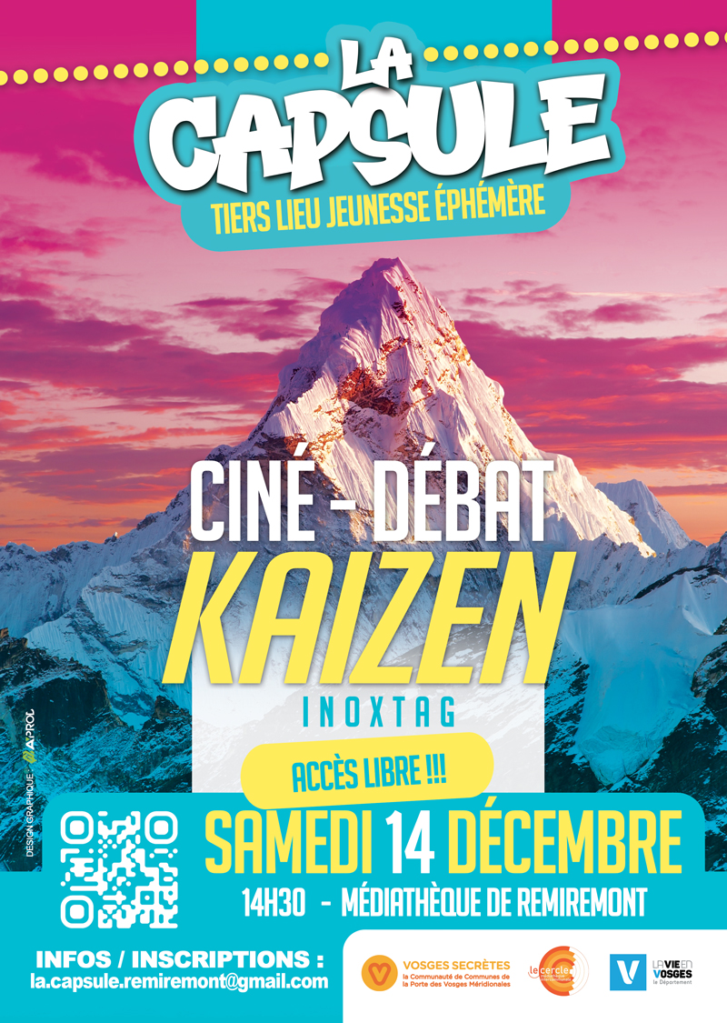 - – Ciné-débat : projection du film « Kaizen » d’Inoxtag à 14h30, suivi d’échanges.
