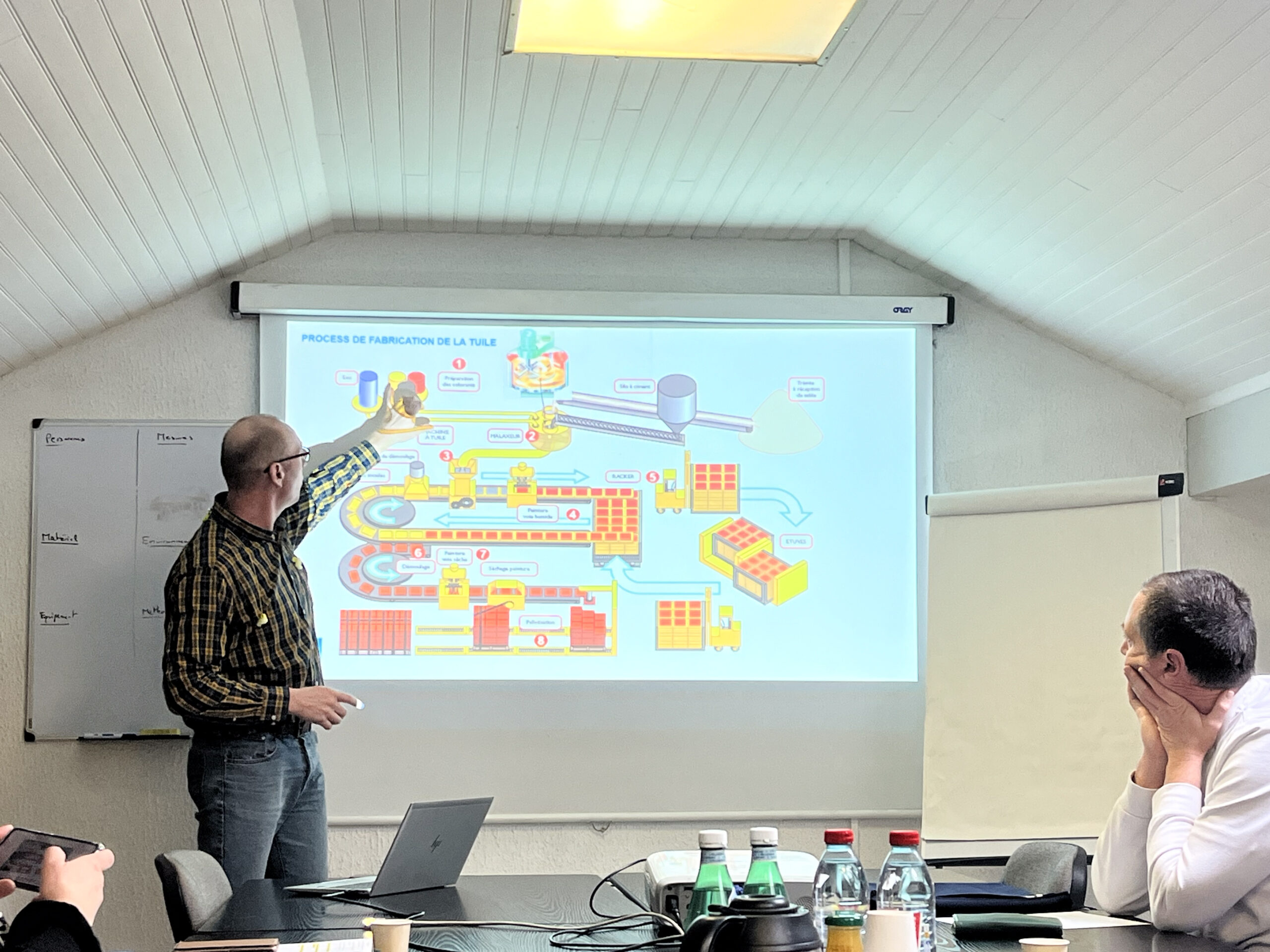 Après la présentation, les élus ont enfilé les équipements de sécurité nécessaires pour visiter l’atelier de production. Ils ont pu observer en direct les différentes étapes de fabrication d’une tuile, de la matière première au produit fini. Cette immersion a permis aux élus de mieux comprendre les spécificités du métier et d’apprécier le savoir-faire de cette entreprise locale.