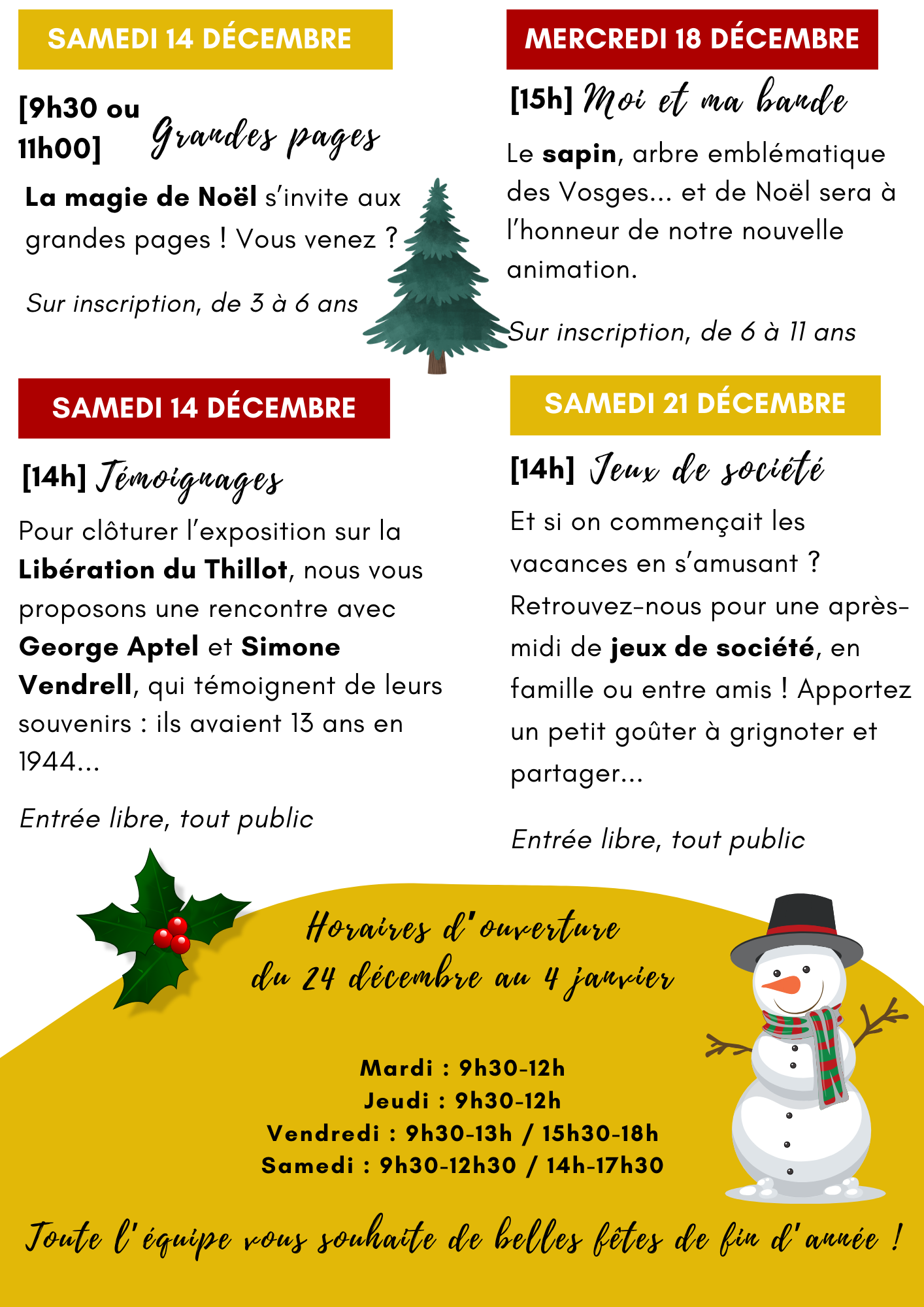 Deprecated: Use of "parent" in callables is deprecated in /project/VIDEV/web/app/plugins/simple-lightbox/includes/class.options.php on line 501 Programme des animations de décembre à la médiathèque du Thillot - Remiremont Info
