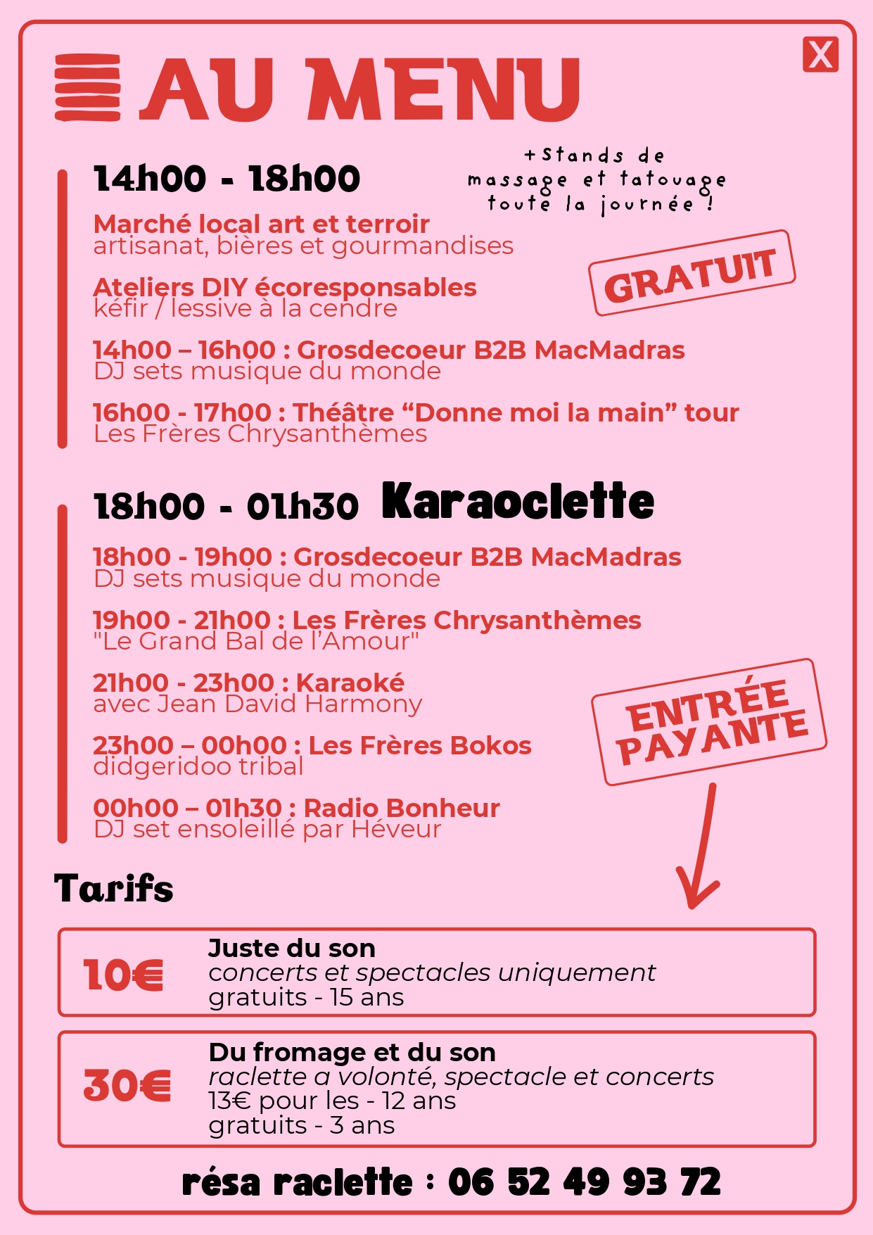 - Réservations : Contactez le 06 52 49 93 72.