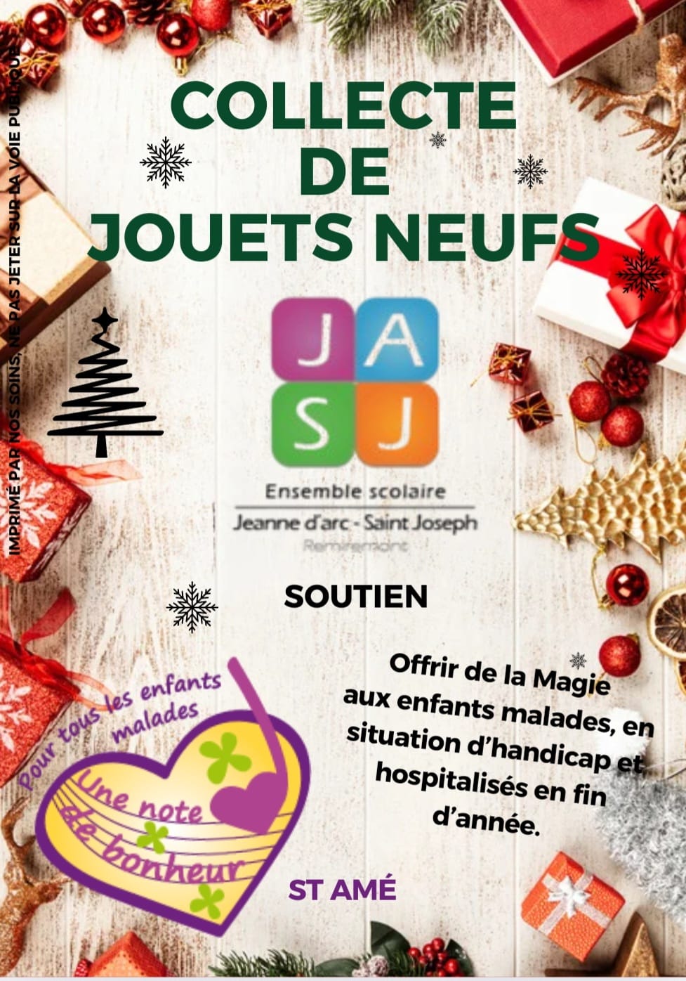 Une fois collectés, les jouets sont remis à l’association Une Note de Bonheur de Saint-Amé, qui se chargera de la distribution dans les divers établissements cités ci-dessus.