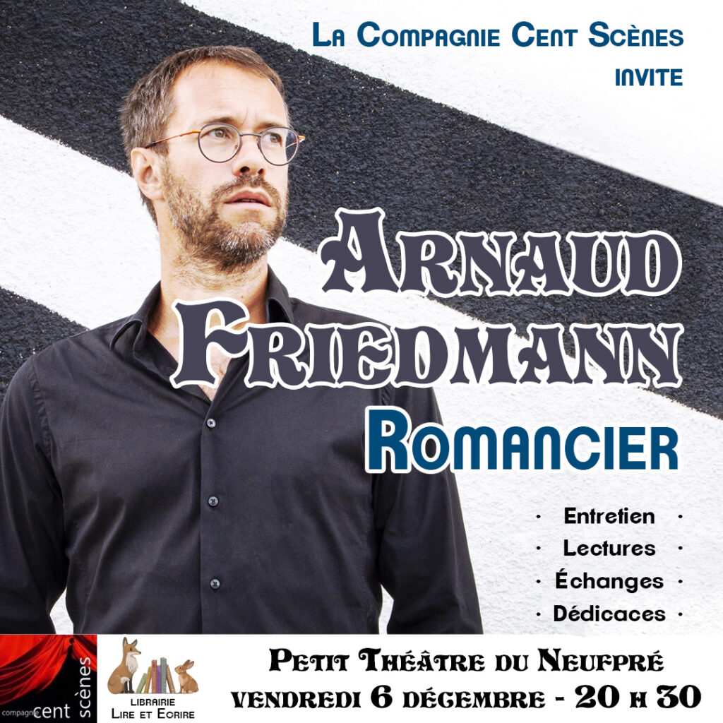 Dernier rendez-vous de l’année 2024 pour la Compagnie Cent Scènes, et non des moindres, ce vendredi 6 décembre, 20h30, au Petit Théâtre du Neufpré : l’auteur Arnaud Friedmann est l’invité de cette dernière rencontre littéraire !