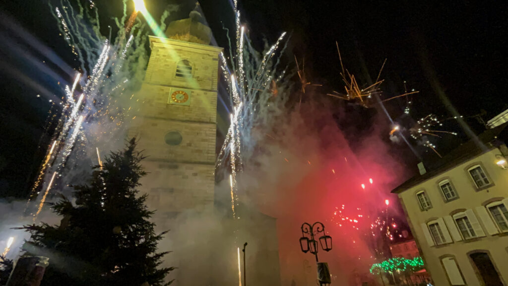 Ce dimanche 22 décembre, l’église abbatiale de Remiremont a offert un spectacle exceptionnel qui a émerveillé le public venu en nombre. La majestueuse façade de l’abbatiale a été mise en valeur par un spectacle pyrotechnique grandiose, où des feux ont été tirés depuis le sol, mais aussi en hauteur et directement sur la façade du monument.