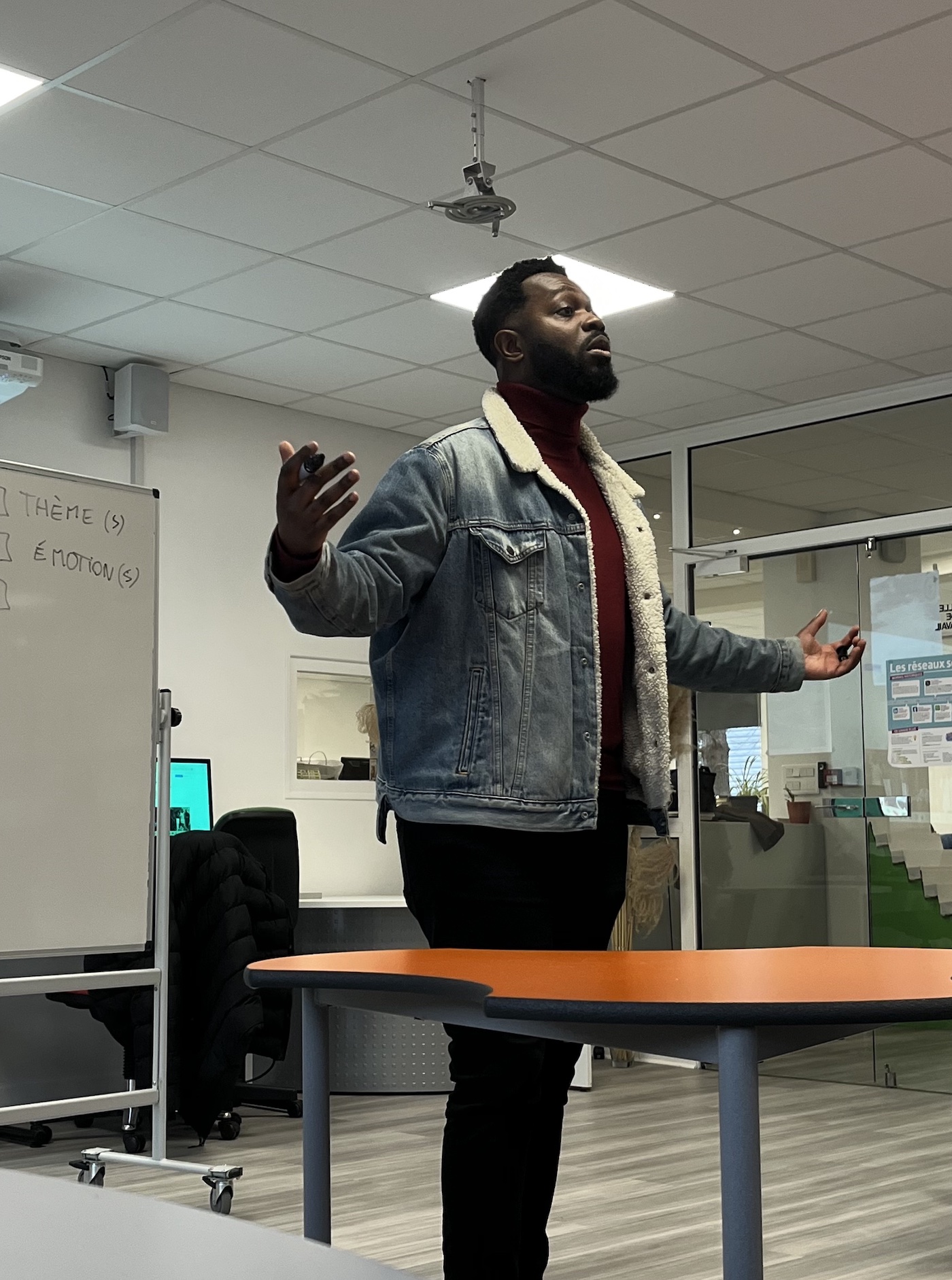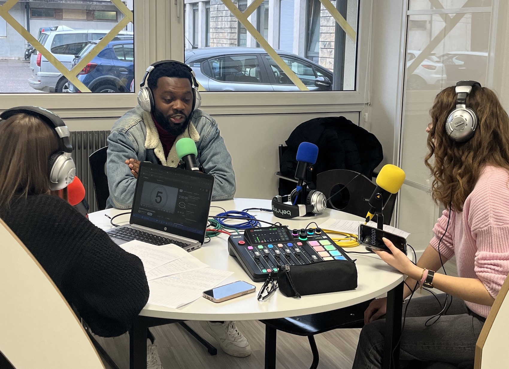 Titulaire d’un bac L, d’une licence Culture et Communication, il possède également un diplôme de journalisme et un master Executive MBA (Business Administration). À la fois journaliste en radio indépendant et intervenant sur des ateliers d’écriture, de radio, de journalisme ou de prise de parole en public, il a pris le temps de répondre aux questions que Lola et Alizée, élèves de terminale STMG, avaient préparées avec la station de radio flambant neuve du CDI : « Je n’ai aucune journée type. Je peux commencer le matin en allant à la radio ou faire une répétition avec mes musiciens, monter 3 heures plus tard sur une scène pour travailler un spectacle et, le soir, réaliser un atelier de prise de parole. »