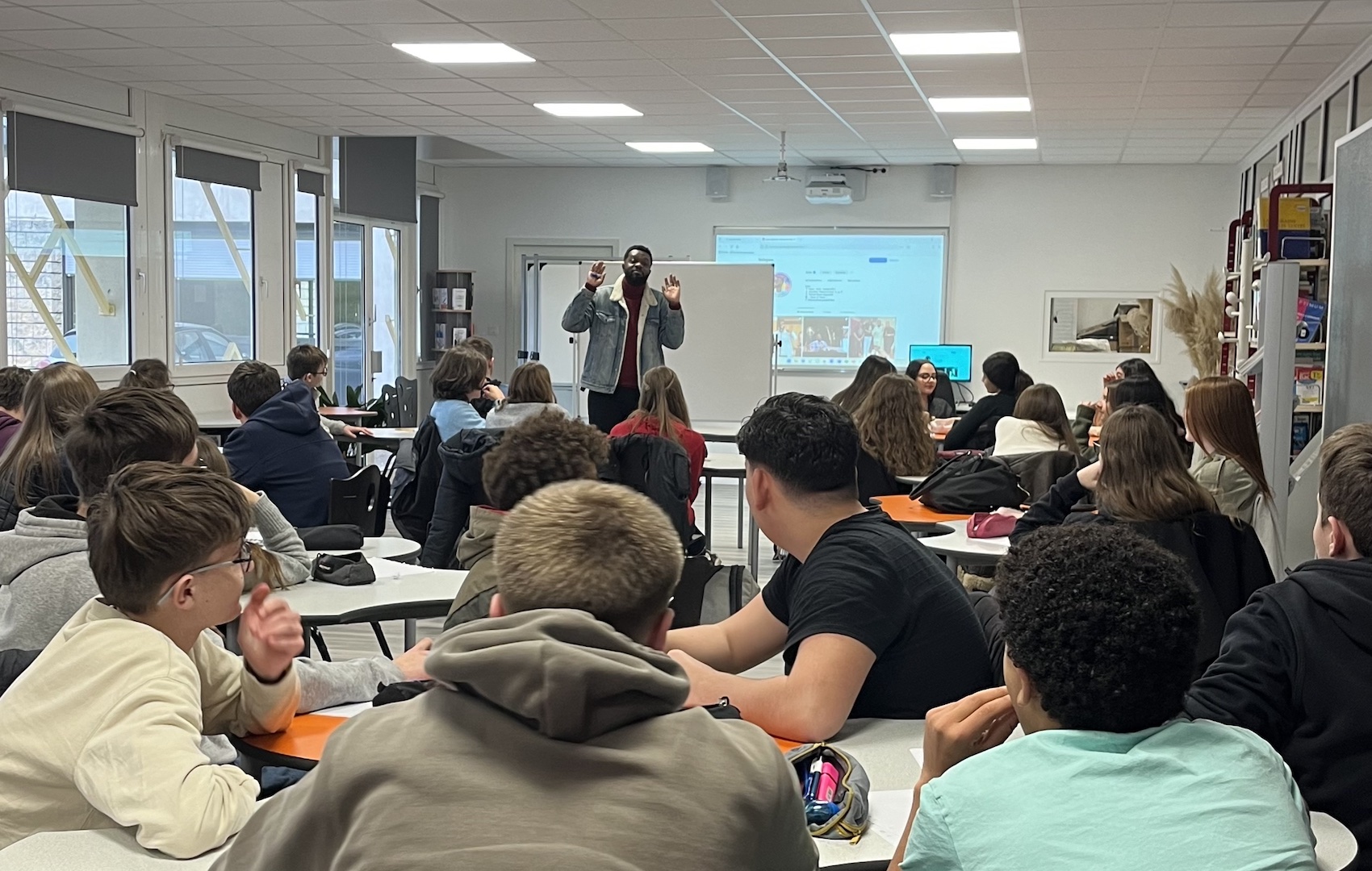 La communication interne et externe autour de cette action a été réalisée en parallèle par Mme Luchier, professeur de STMG, et les élèves de Tles RH dans le cadre d’une séquence « communication autour d’un évènement au CDI ». Lola, Alizée, Ilknur, Lola et Aimelyne ont pu expérimenter l’interview radiophonique et développer des compétences techniques comme l’animation ou le montage radio.