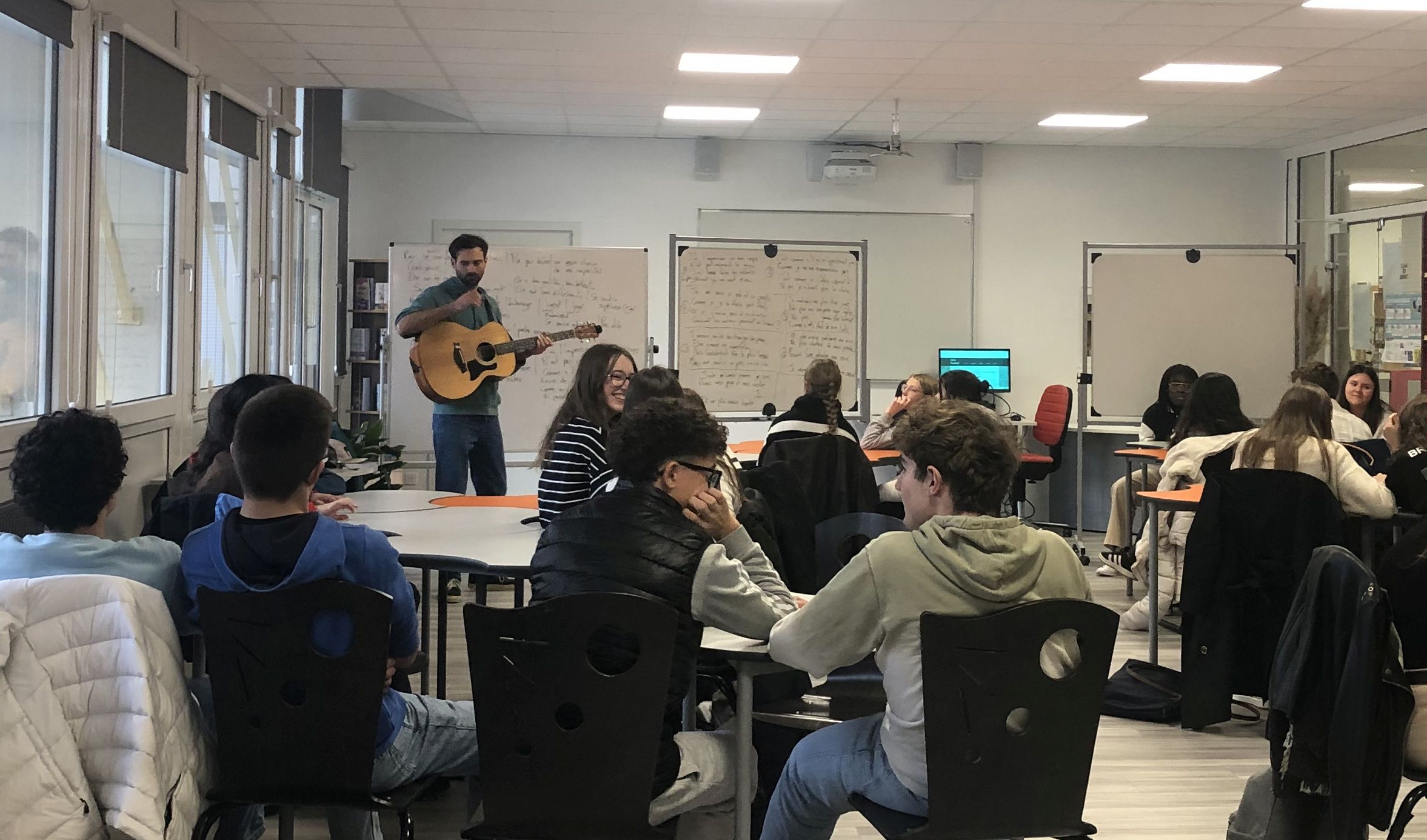 Les lycéens ont donc pu bénéficier de séances à la fois musicales et poétiques, dans lesquelles chaque groupe est parvenu à créer soit une chanson, soit quelques strophes chantantes autour de sujets qu’ils ont librement choisis.