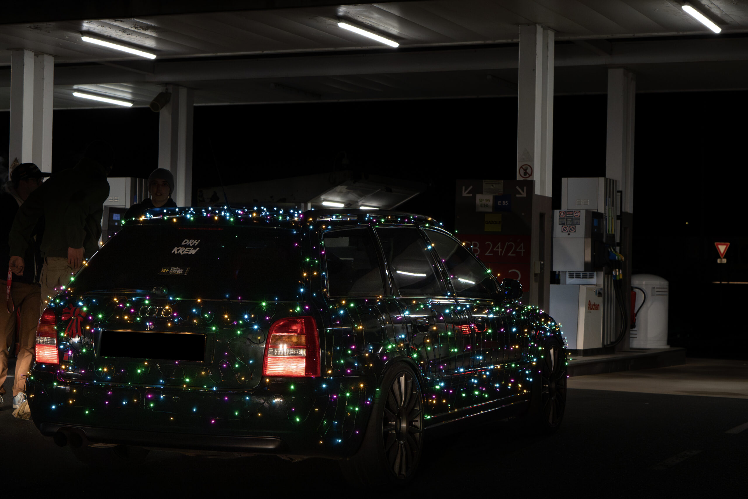 Ce sont donc trois amis de Metz : Quentin, Lucas, et Nicolas, qui apportent une touche festive sur les routes de Lorraine avec leurs voitures ornées de guirlandes lumineuses. À bord de leur Audi S4, de leur Golf 4 R32 et de leur Golf 6 GTI, ces passionnés du monde automobile illuminent les villes et les villages en cette période de fin d’année.