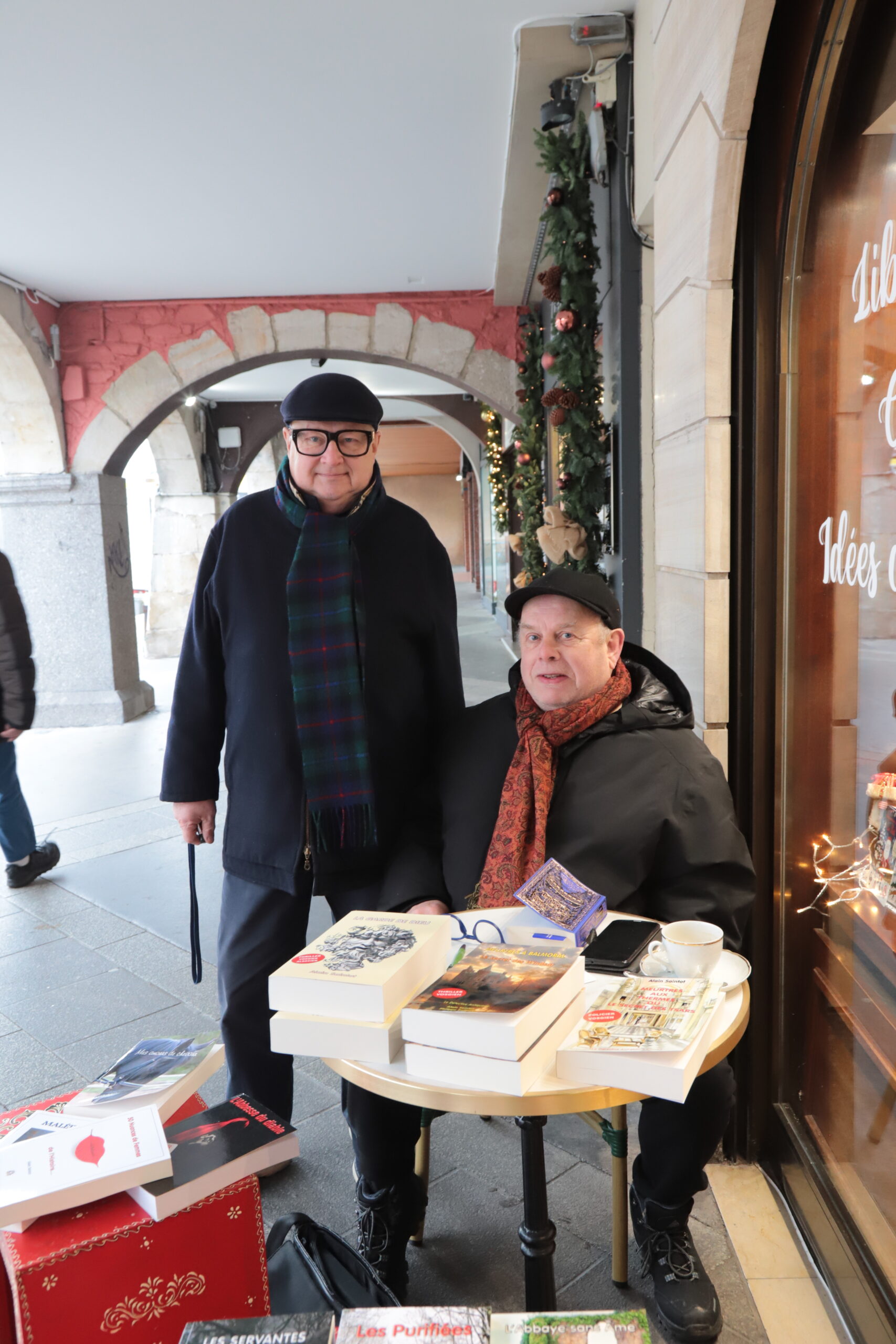 Pour ceux, sans doute nombreux, qui ont loupé cette occasion de rencontrer Alain Saintot, qu’ils se rassurent, il sera encore à la librairie « Pause et vous » les mardis matin 17 et 24 décembre. Une belle occasion d’échange en toute simplicité avec l’auteur et peut-être aussi son complice Philippe qui participe pleinement à cette aventure, et d’acquérir un roman dédicacé pour faire ou se faire plaisir.