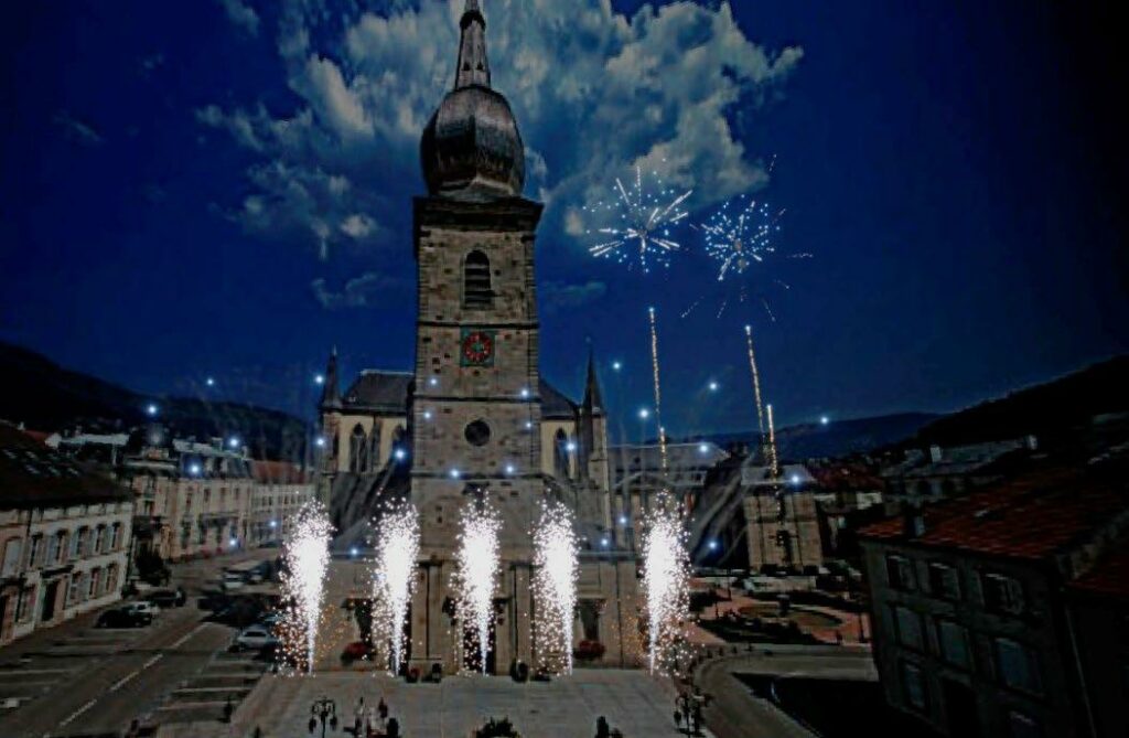NOËL A REMIREMONT : SPECTACLE PYROTECHNIQUE INEDIT devant la façade de l’église abbatiale