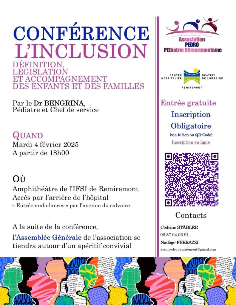 Une conférence sur l’inclusion aura lieu le mardi 4 février à partir de 18 h, à l’amphithéâtre de l’IFSI Remiremont. Retrouvez l’affiche relative à l’évènement ci-dessous :
