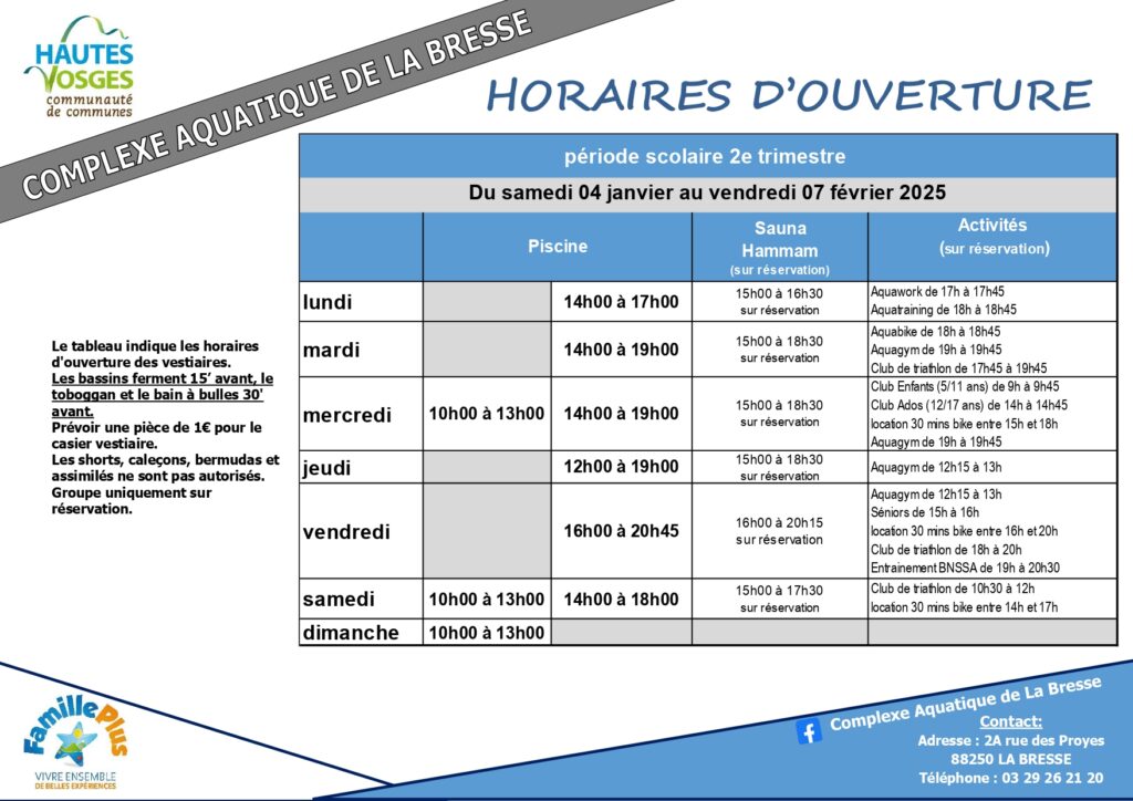 Deprecated: Use of "parent" in callables is deprecated in /project/VIDEV/web/app/plugins/simple-lightbox/includes/class.options.php on line 501 Horaires de la piscine de La Bresse pour le 2e trimestre 2024-2025 - Remiremont Info