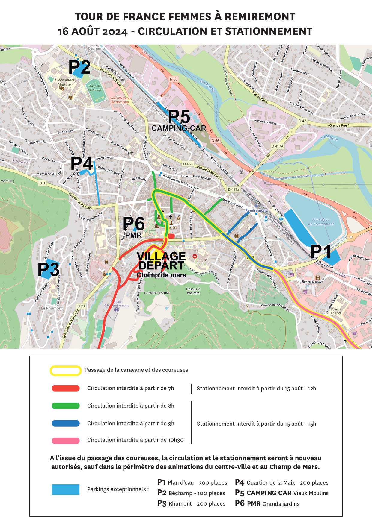 A partir de 10h30, toute circulation étant interdite, la circulation à ces endroits ne sera autorisée qu’après contact et avec l’accord des organisateurs.
