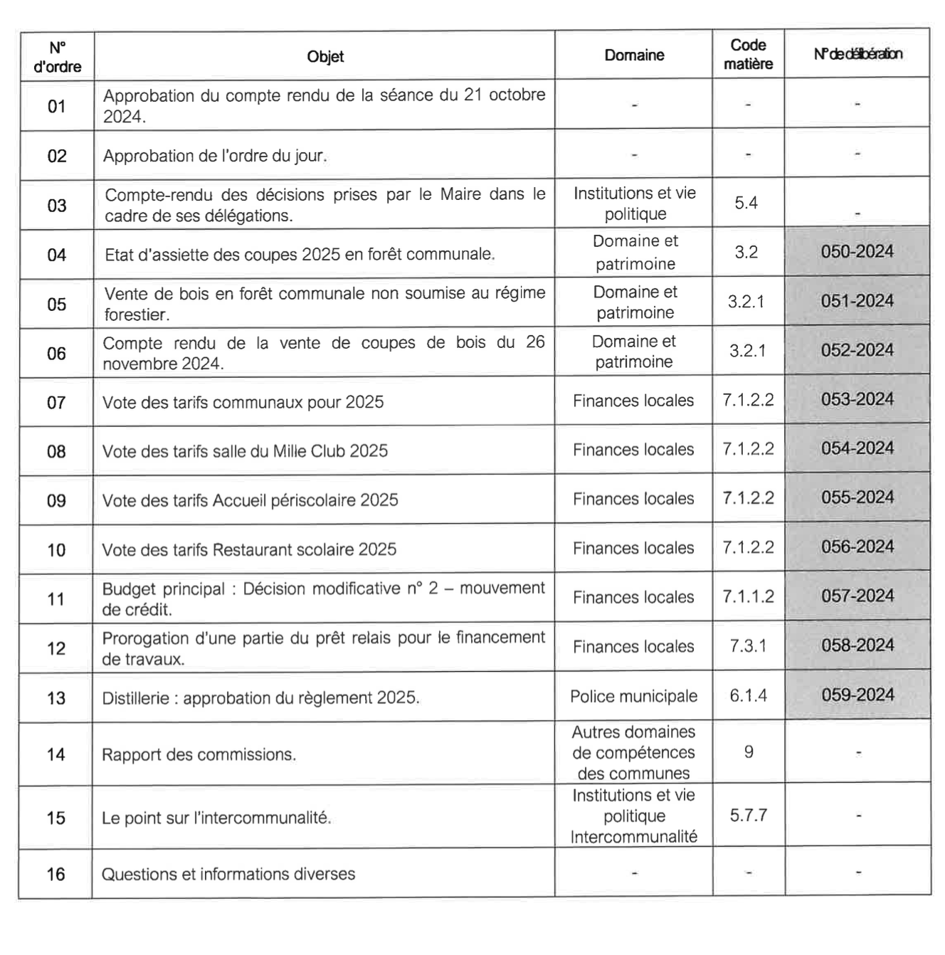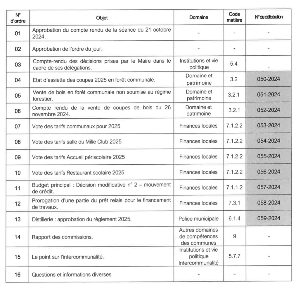 ORDRE DU JOUR DU CONSEIL MUNICIPAL DU LUNDI 20 JANVIER 2025 A 20h00