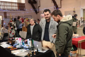 Ici tout, ou presque, est local, pas de produits ou de services qui viennent de l’autre bout de la planète ! L’esprit « marché de Noël » est bien présent : « Même si la farine, pour faire les crêpes, ne vient pas de Raon, elle a été achetée sur place à la petite épicerie locale » précise Alexandre Leducq. Une vingtaine d’artisans, producteurs et associations de Raon et des environs proches ; proposaient des biscuits, des bougies, des produits cosmétiques et de parfumerie, des savons, des légumes, des terrines, des décorations de Noël, des sacs à main, des vêtements pour enfants… Tout était prévu pour faire quelques achats bienvenus pour les fêtes de fin d’année.