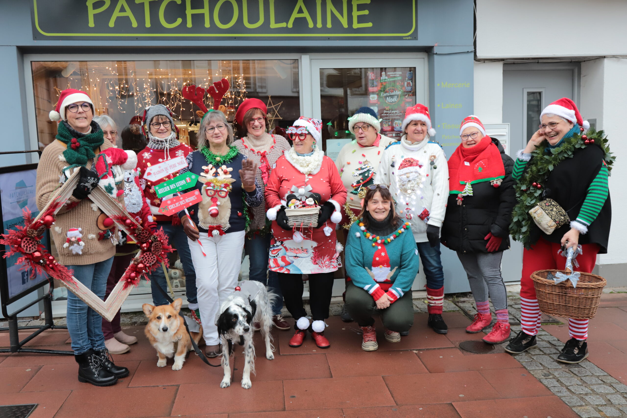 Marie-Hélène Cantot, accompagnée d’une dizaine de clientes du magasin Patchoulaine ayant relevé le défi du pull moche, a déambulé rue de la Courtine, place de Lattre de Tassigny, rue de la Xavée et rue Charles de Gaulle. La petite troupe s’est arrêtée dans bon nombre de commerces qui ont bien voulu, ou simplement pu se rendre disponibles, pour prendre une joyeuse pause photo encadrée devant leur établissement.