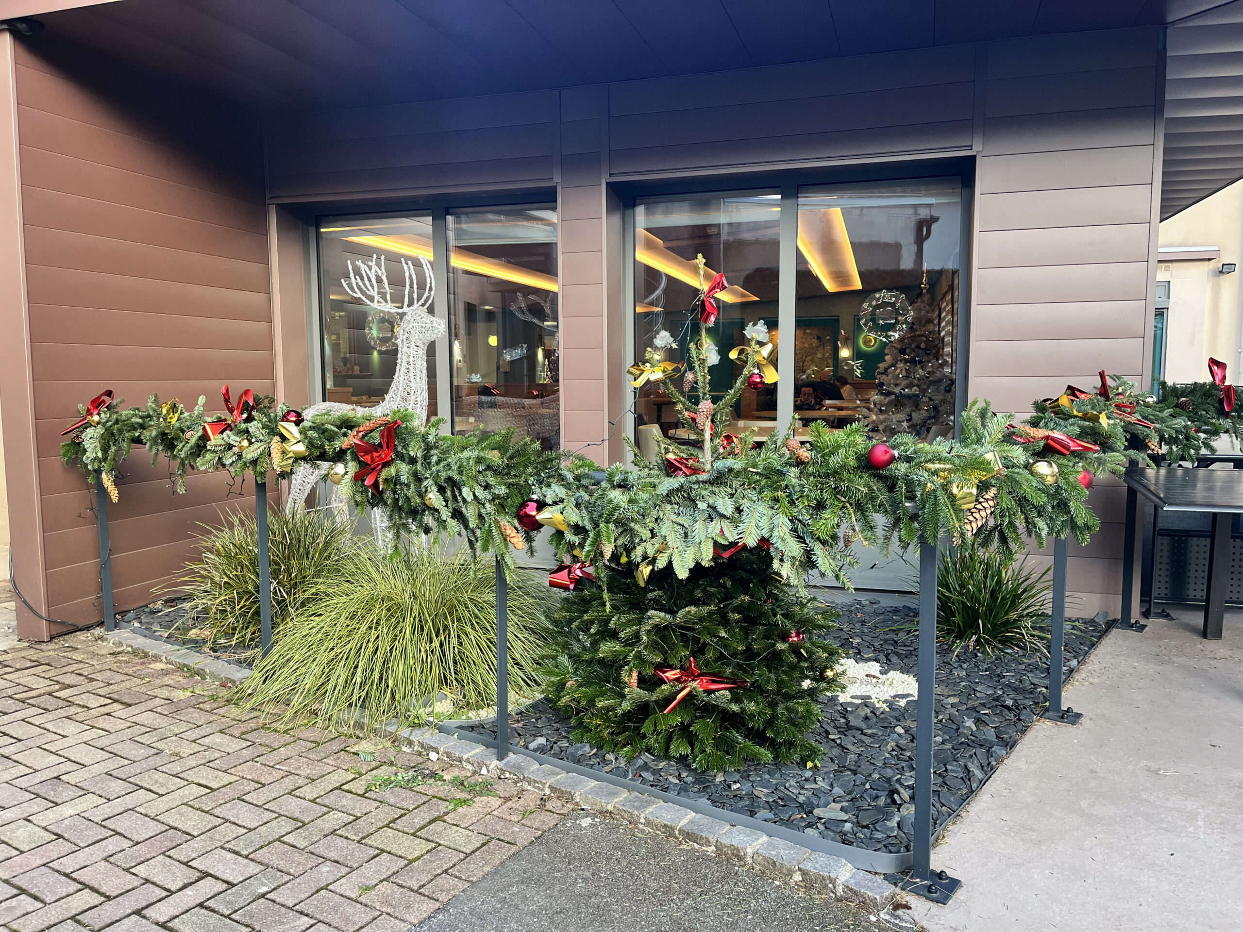 La magie commence dès l’extérieur, où Le Cyclamen de Remiremont a réalisé une décoration soignée qui attire les regards des passants. La porte d’entrée, un élément central de ce bâtiment chargé d’histoire, est particulièrement mise en valeur, devenant même un lieu prisé pour les photos souvenirs. Dans la cour intérieure, les rampes d’accès ont été ornées, et un cerf lumineux, propriété de l’établissement, trône fièrement pour ajouter une touche enchantée.