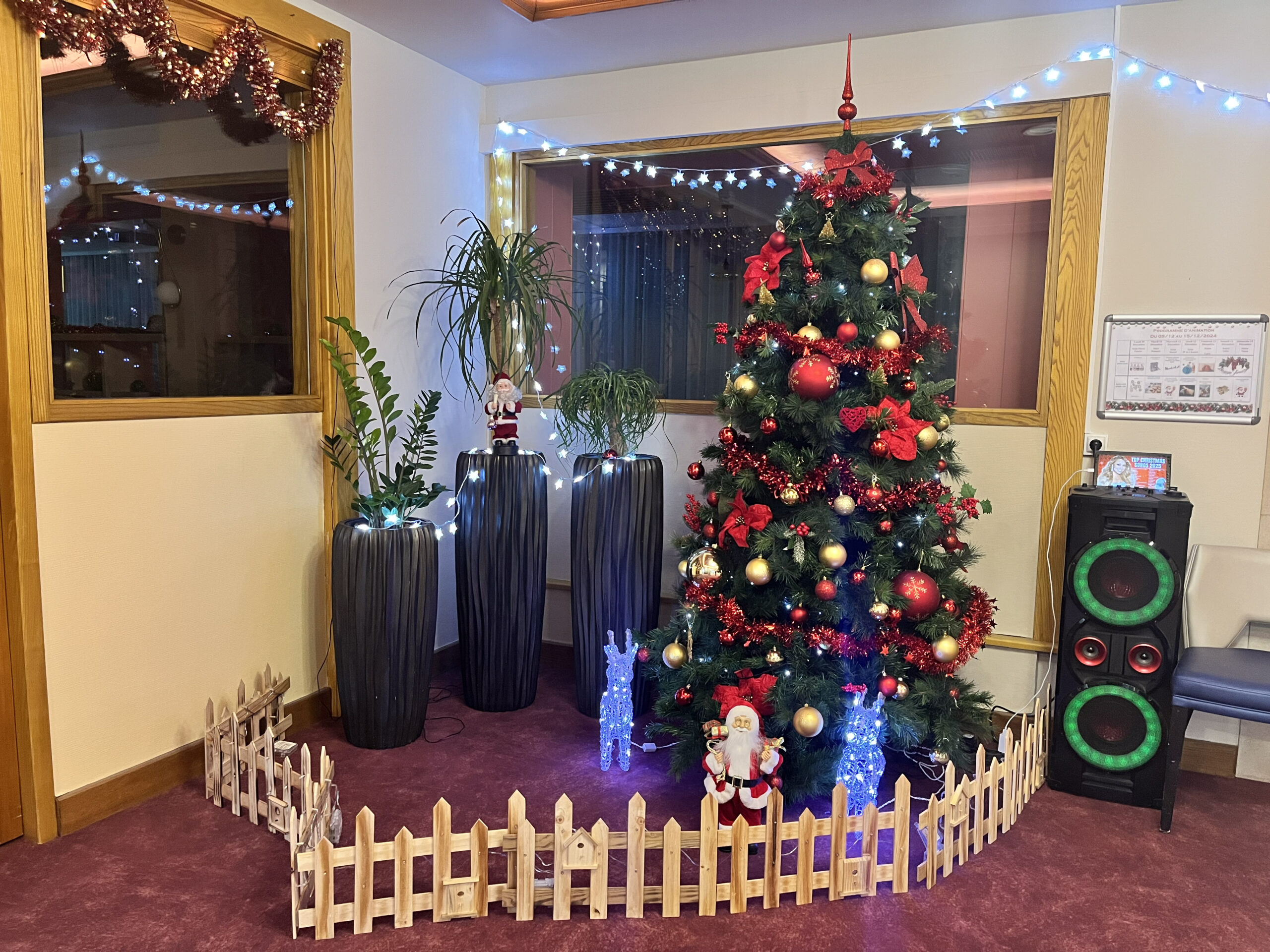 À l’intérieur, la féérie se poursuit grâce à plusieurs sapins et une ambiance musicale où résonnent des chants de Noël. Ces décorations, réalisées avec soin lors d’animations avec les résidents, reflètent l’esprit participatif de l’établissement.