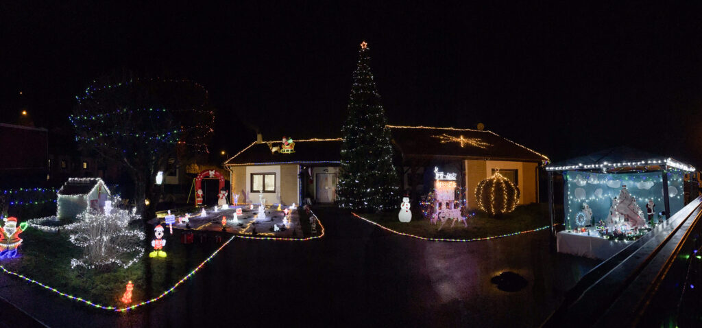 Pierre Briys ne compte pas ses efforts pour sublimer son terrain. Avec plus d’un kilomètre de guirlandes et plus de cent décorations lumineuses, il transforme chaque coin de sa propriété en un spectacle magique. Si au début, ses décorations étaient modestes, elles se sont étoffées au fil des années, au fur et à mesure que sa passion pour les lumières grandissait. Ce qui a commencé pour émerveiller ses enfants est désormais un spectacle offert à ses petits-enfants, mais aussi à tous les enfants qui passent dans la rue.