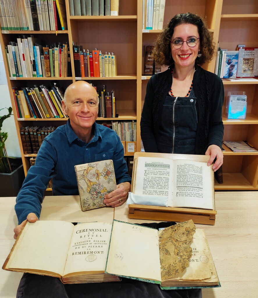 Récemment retraité, il fut médecin anesthésiste à l’hôpital de Remiremont de 1984 à 2023 et adhère à la « Société d’Histoire Locale de Remiremont » en 1990. Il s’intéresse depuis quelques temps à la bibliophilie, en particulier dans le domaine de l’histoire de la médecine. C’est au Salon International du livre ancien à Paris en septembre dernier qu’il découvre le précieux livre, exposé dans une vitrine, titré : « Rare rituel de l’Abbaye de Remiremont 1750 ». Ledit livre est proposé à la vente au prix de 3 600 € car rare et précieux. De retour à Remiremont, le Dr Hotton se rend aux Archives Municipales de Remiremont et questionne la directrice, Stéphanie Ysard, à propos du fameux livre « rare et cher ». Connaissant parfaitement le contenu desdites archives de la Ville, elle retrouve quatre exemplaires du livre en question.