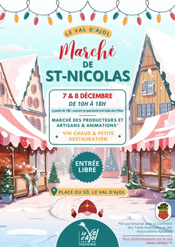 Le programme promet de ravir petits et grands. Le passage tant attendu de Saint-Nicolas aura lieu dimanche à 17 h devant la mairie, suivi d’un spectacle organisé par le comité des fêtes à la salle des fêtes à 18 h. La veille, samedi soir, l’orchestre d’harmonie du Val d’Ajol offrira un apéro-concert festif.
