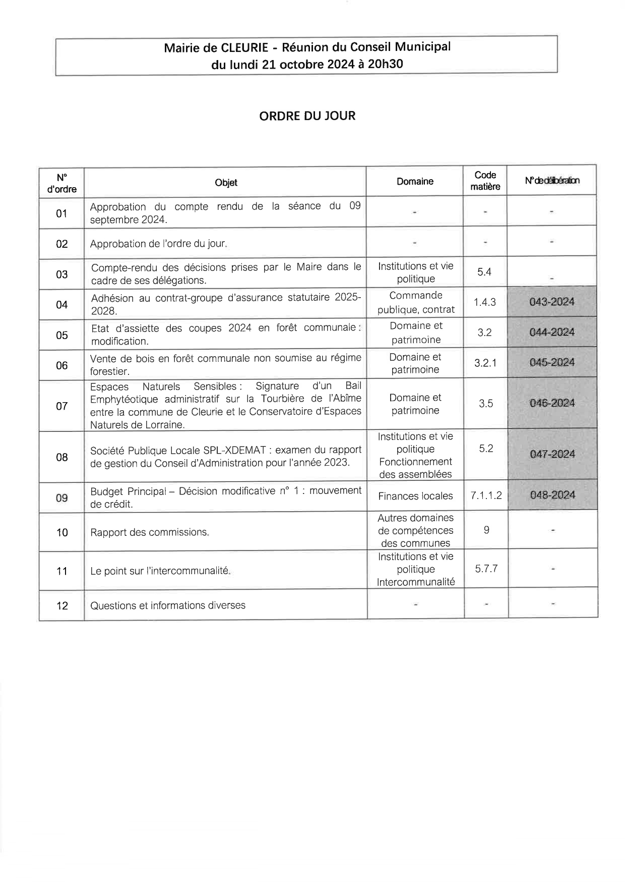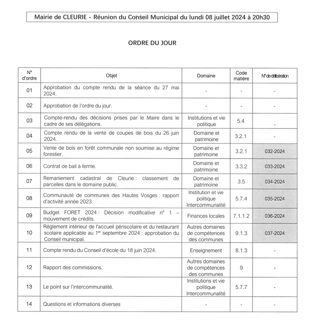 ]]>Mairie de CLEURIE – Réunion du Conseil Municipal du lundi 16 décembre 2024 à 20h30