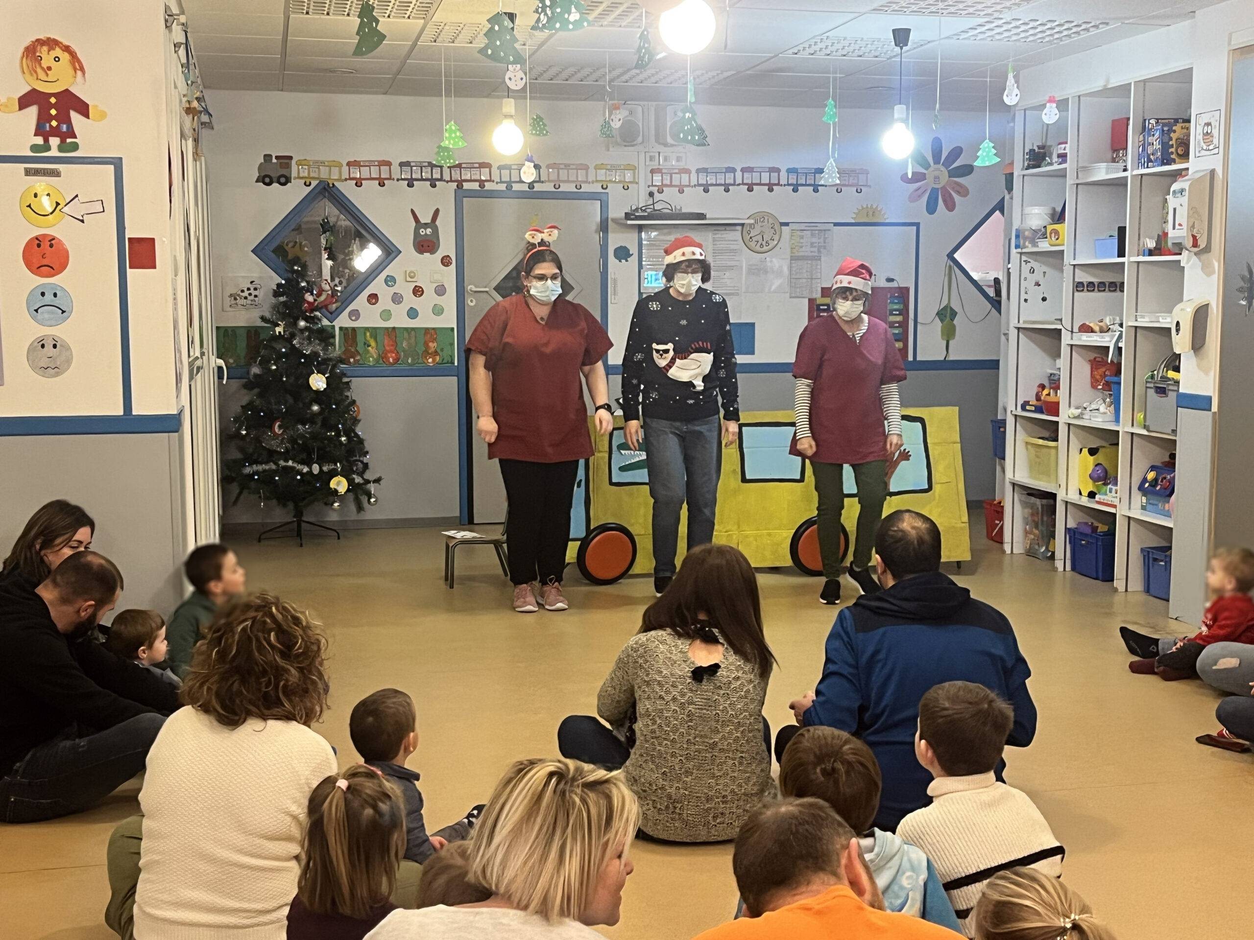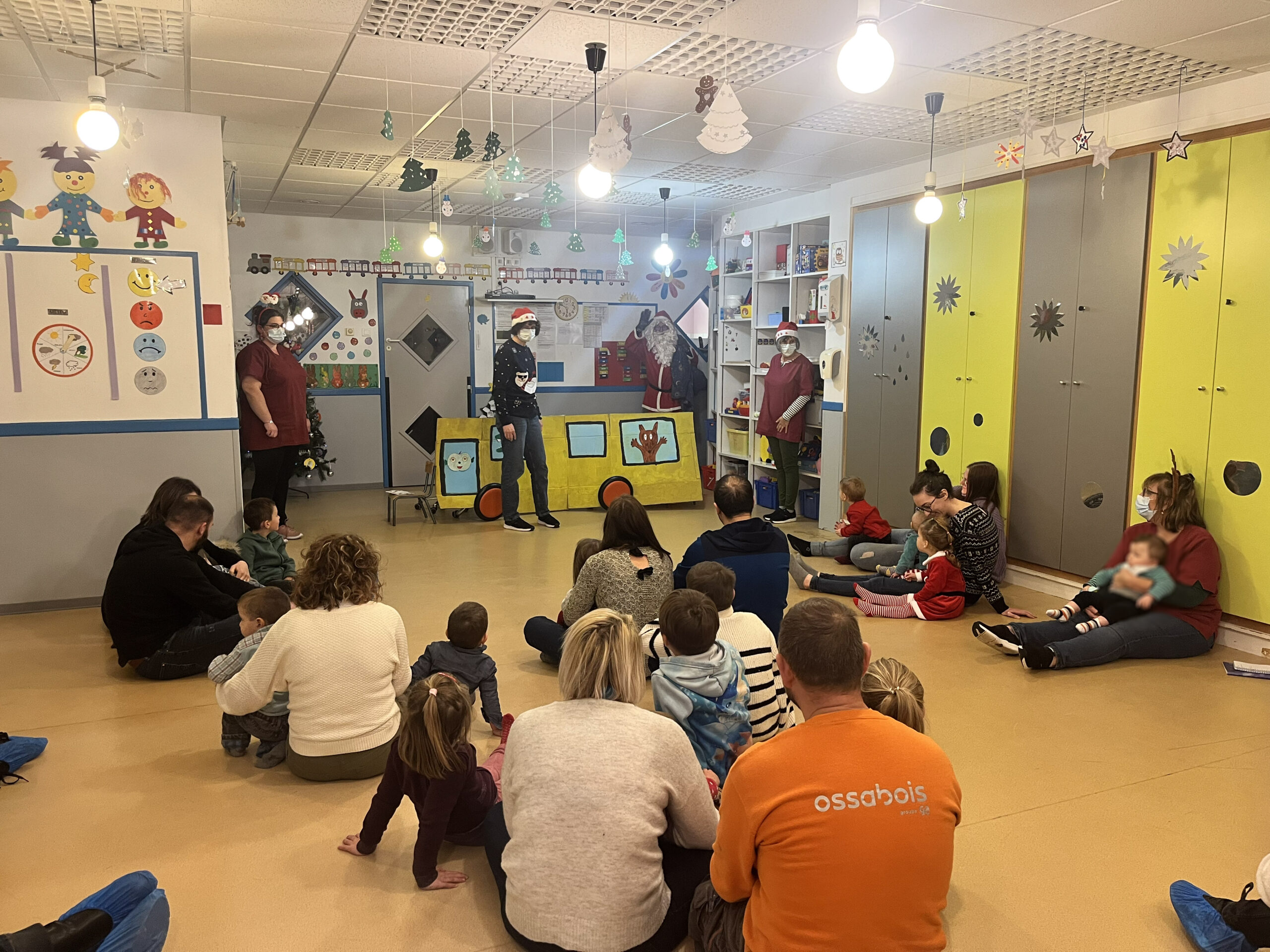 Ce mardi 17 décembre, l’esprit de Noël s’est invité à la crèche Sucre d’Orge de Pouxeux pour un moment de fête et de convivialité. Les animatrices d’activité, les éducatrices de jeunes enfants (EJE) et les auxiliaires de puériculture ont offert un spectacle enchanteur, mis en scène et interprété par leurs soins, à destination des tout-petits et de leurs familles.