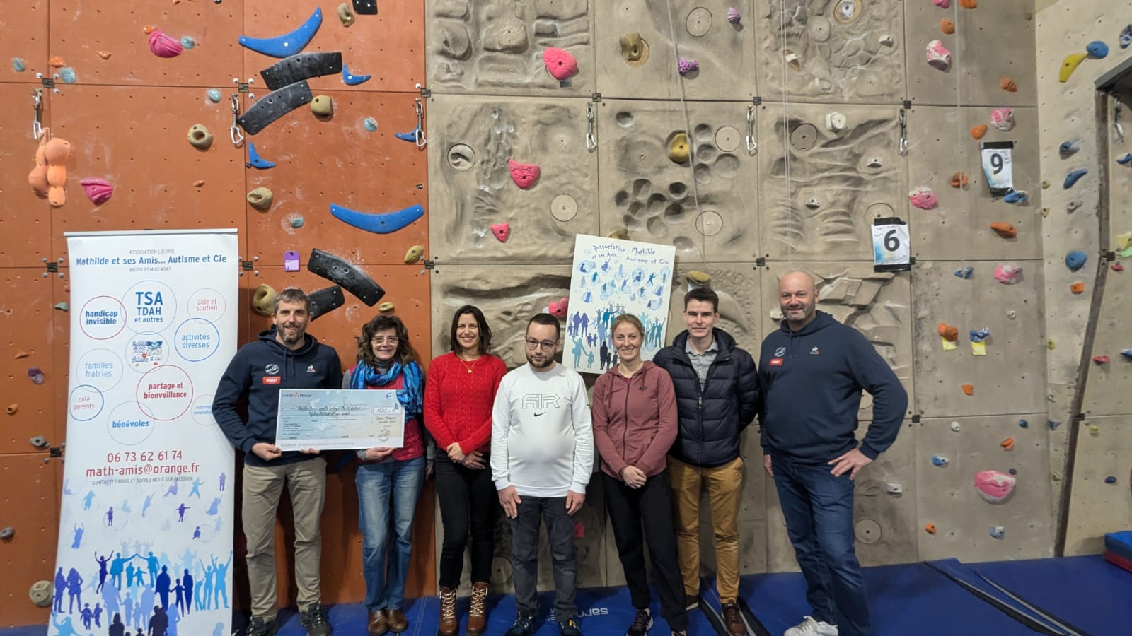 Ce mardi 25 février 2025, le Club Grimpons a eu le plaisir et la fierté de remettre un chèque de 1323 € à l’association « Mathilde et ses Amis… Autisme et Cie ». Cette somme correspond à l’intégralité des bénéfices de l’Open des Vieux Lézards, compétition d’escalade organisée le 12 janvier dernier à Éloyes.