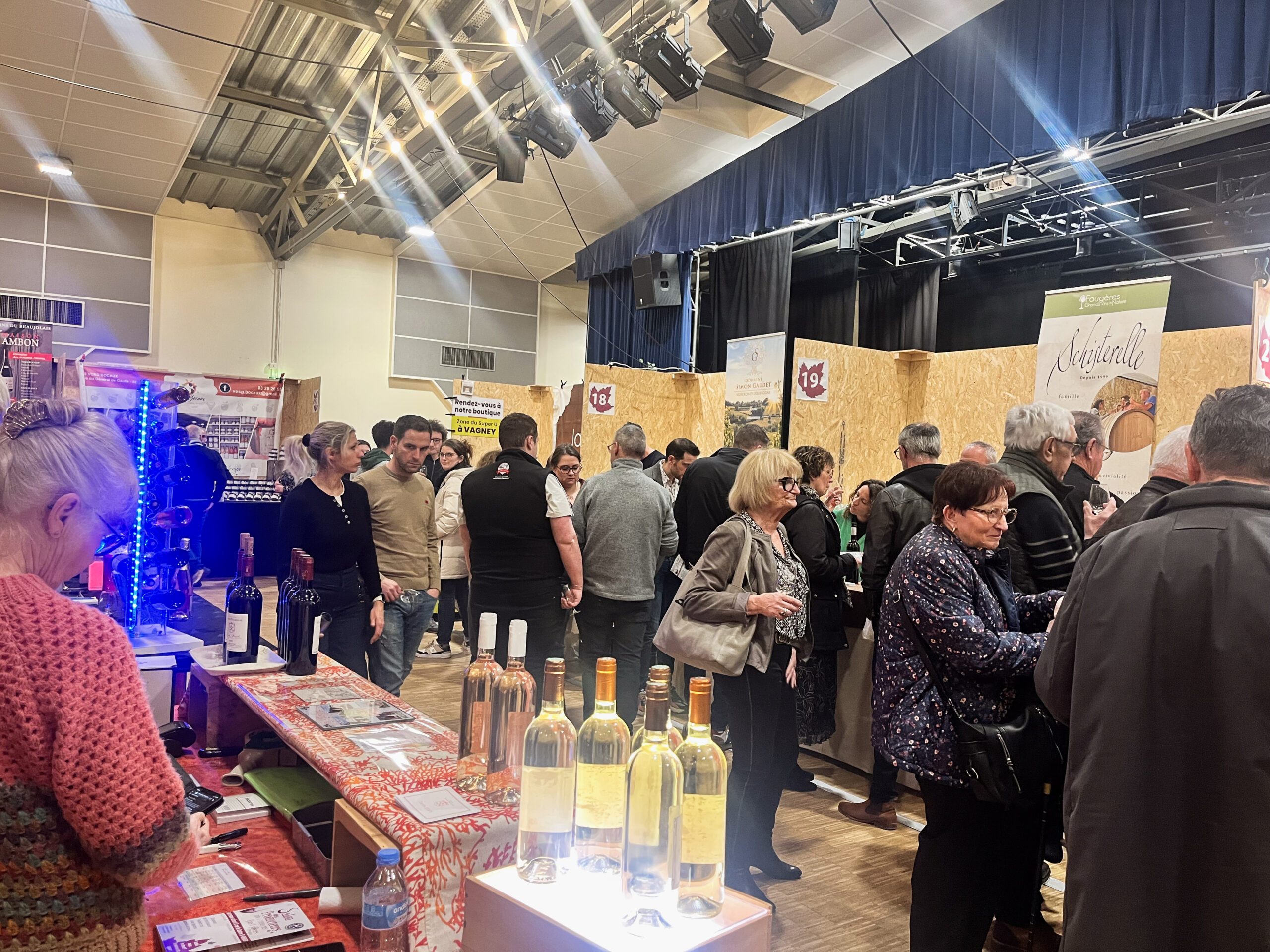 Ce vendredi 31 janvier lançait la 11ᵉ édition du Salon des producteurs Vins & Saveurs organisé par le Kiwanis de Remiremont. C’est au centre culturel de Saint-Nabord qu’une trentaine d’exposants ont investi les lieux pour proposer des vins en provenance de toute la France et des saveurs plus locales venues, par exemple, de la commune du Val d’Ajol, mais bien d’autres du département ! Les bénéfices de ce week-end sont entièrement distribués à des œuvres sociales.