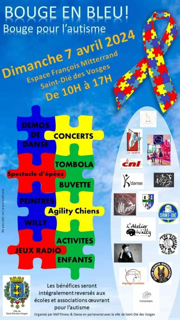 « Bouge en bleu pour l’autisme », c’est un grand élan de solidarité initié par Mélanie Richard, en écho à la Journée mondiale de sensibilisation à l’autisme. La dynamique Déodatienne souhaite à travers cette action annuelle sensibiliser à la différence. Après 2 éditions couronnées de succès, « Bouge en bleu pour l’autisme » fera sa troisième édition le dimanche 7 avril prochain.