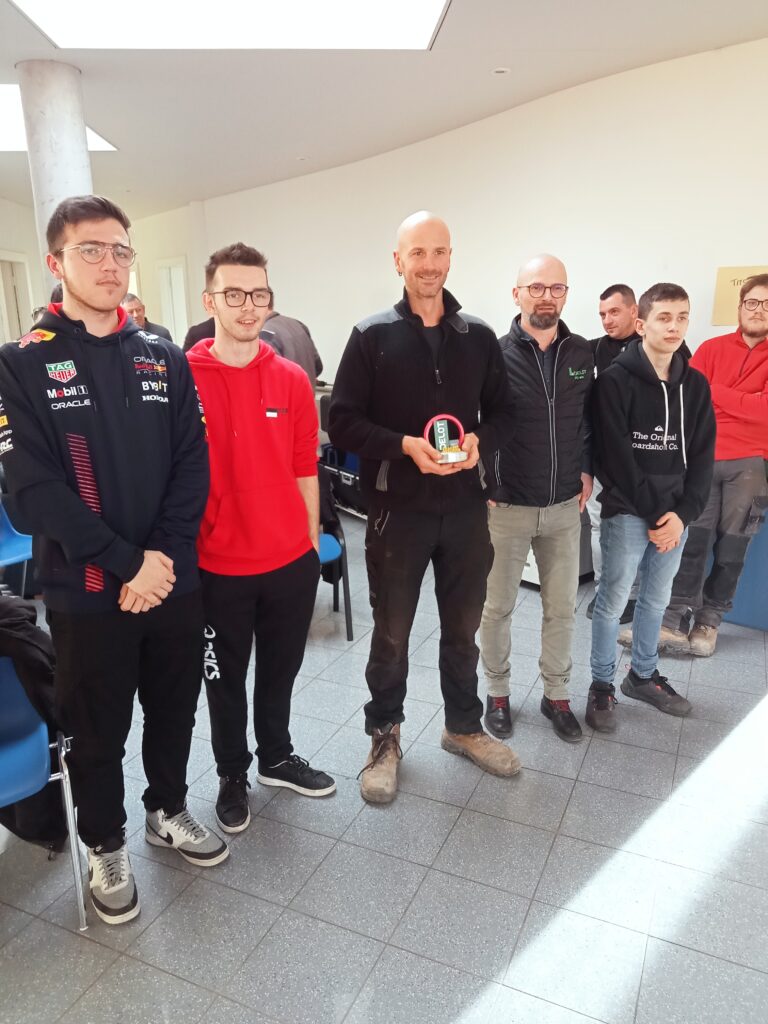 Hier lundi après-midi, 3 élèves ont pu assister à la journée sécurité de l’entreprise Delot, à Anould, filiale du groupe Livio. Mattéo, le concepteur du trophée, Lucas, qui a participé à la programmation des machines, et Milan, qui a pour sa part réalisé la fabrication des socles en aluminium. L’occasion pour eux de participer à un atelier sur les troubles musculosquelettiques, via un logiciel qui analyse les charges sur les différentes parties du corps. L’occasion également de remettre officiellement le trophée. « Un grand merci pour l’accueil qui nous a été réservé, qui conclut un beau projet collaboratif » souligne Eric Ringenbach en guise de conclusion.